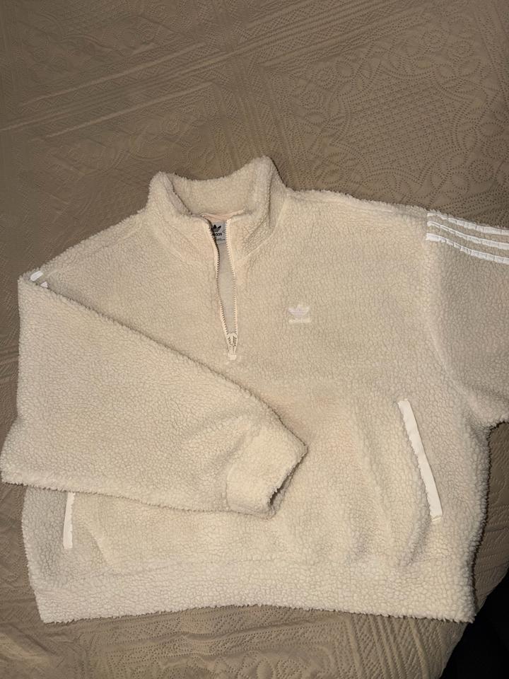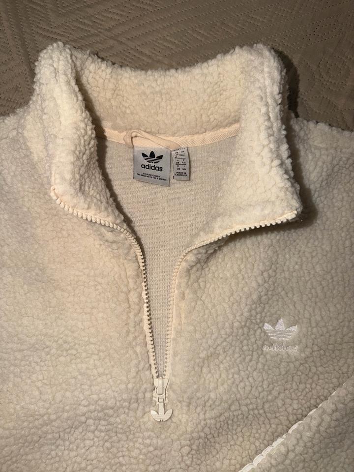 Бежевая молочная зипка от adidas, размер оверсайз (42-44-46)хорошо будет на с и м, состояние классное Артикул: 552026