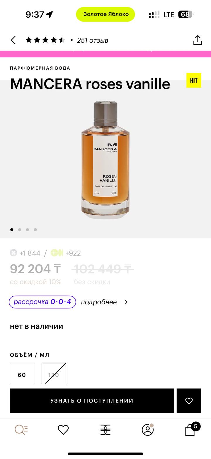 Парфюм MANCERA roses vanille 120 мл Использовано максимум 10% Артикул: 552033