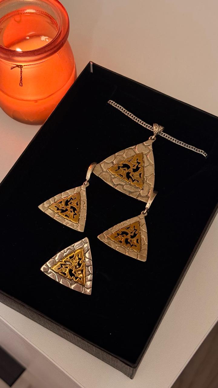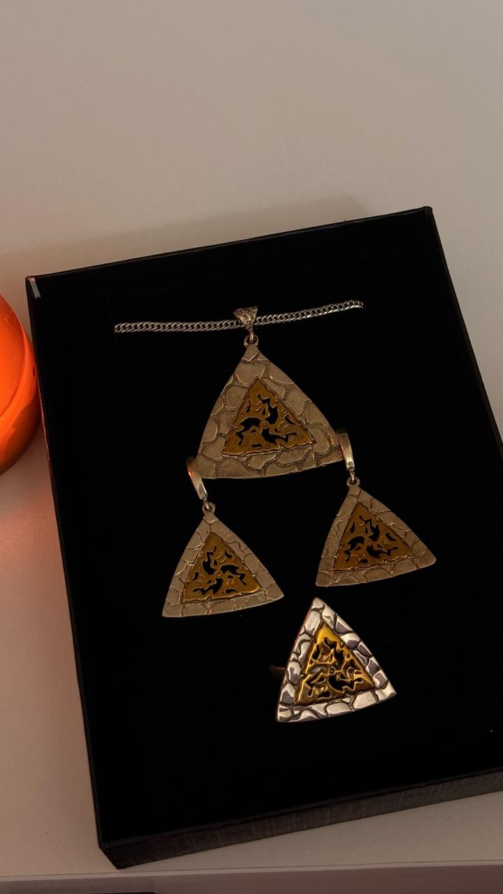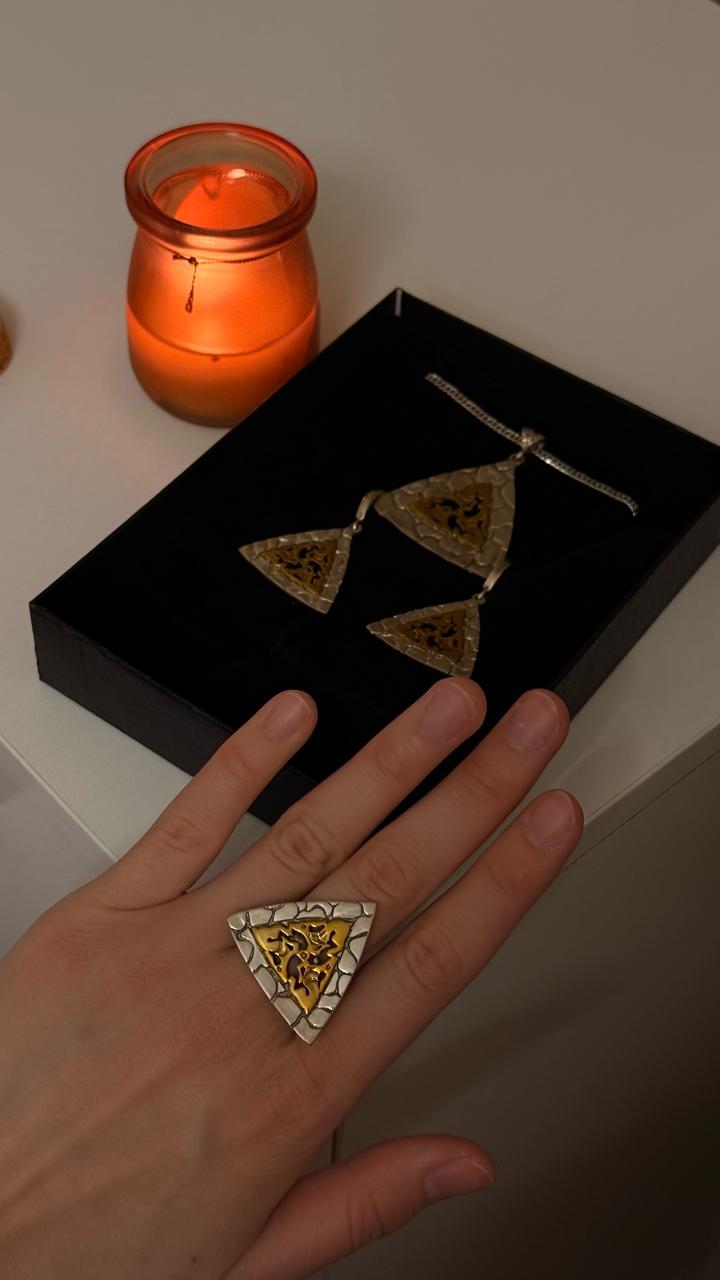 Серьги + кулон с цепочкой + кольцо Очень красивый и необычный набор в трендовом геометрическом стиле. Сочетание серебристого и золотого оттенков смотрится дорого и эффектно ✨ Идеально дополнит любой образ — от повседневного до вечернего 🤍 Состояние: новое Полный комплект: серьги, подвеска с цепочкой и кольцо Лёгкие, удобные, не утяжеляют Отличный вариант как для себя, так и на подарок) Продаю, потому что не ношу🫶🏻 Артикул: 552048