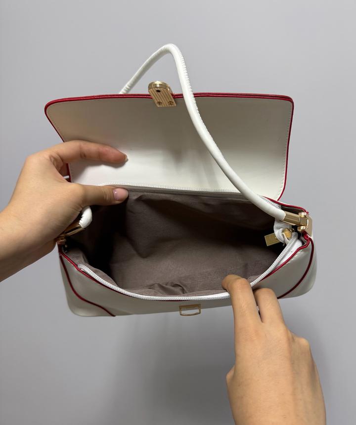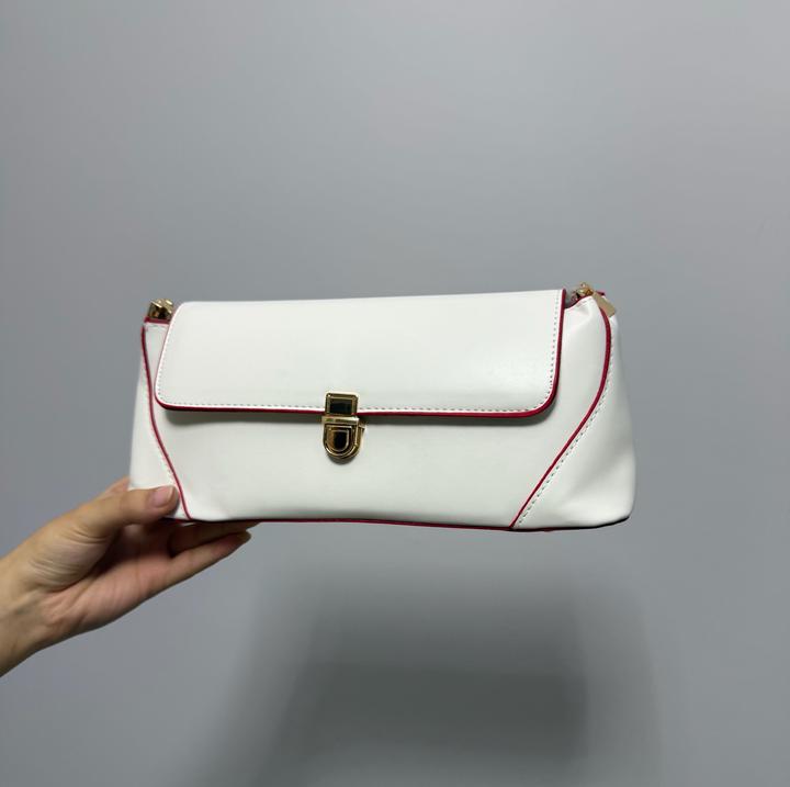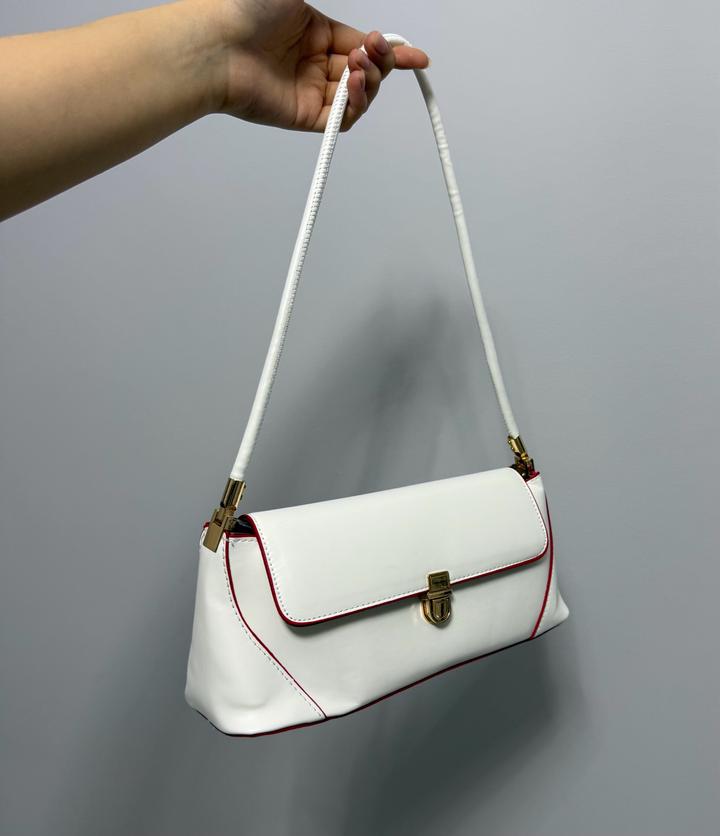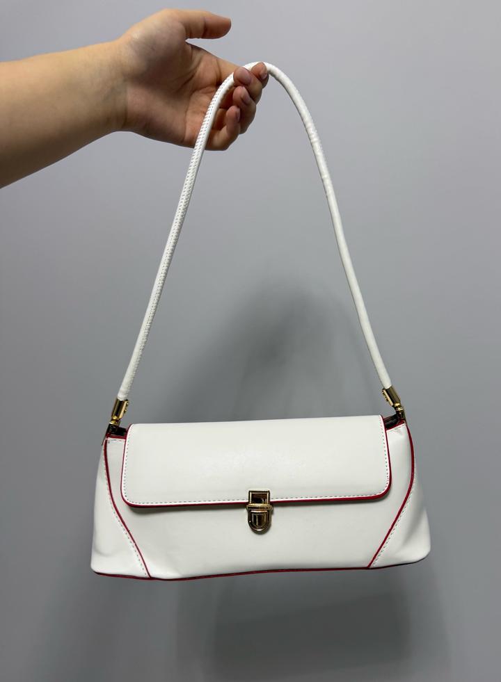 Сумка в стиле baguette bag, компактный размер, белого цвета с красными вставками, вместительная. Метериал Эко-Кожа💔 Артикул: 552059