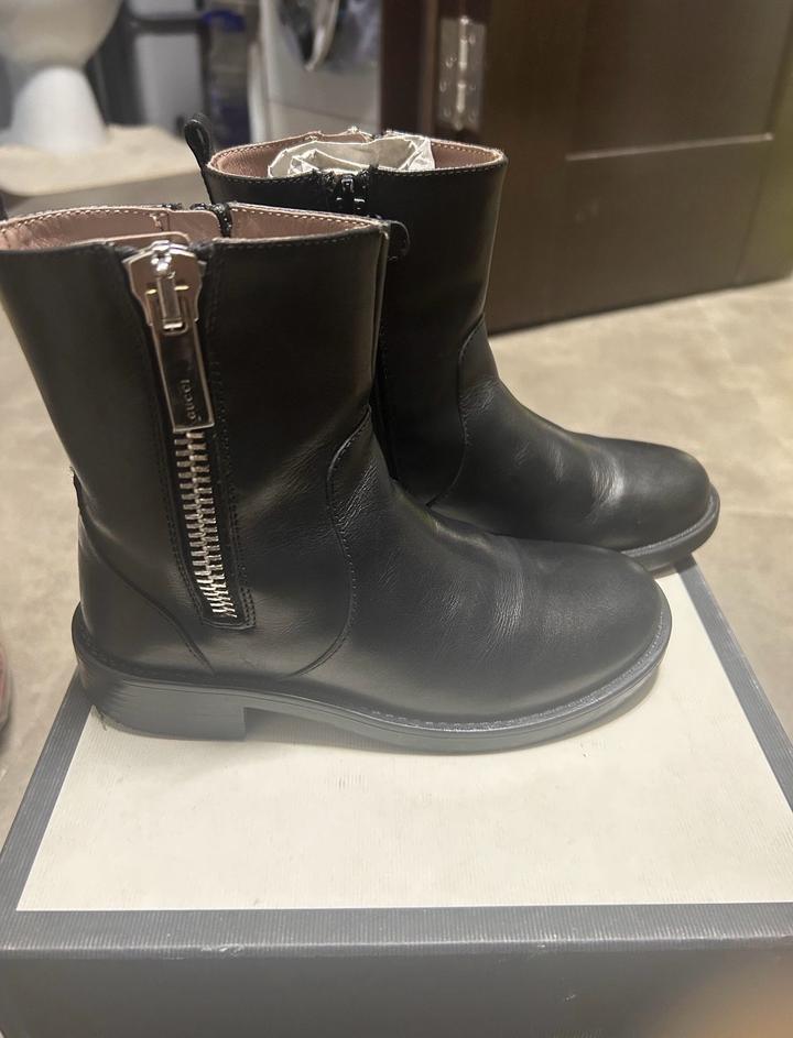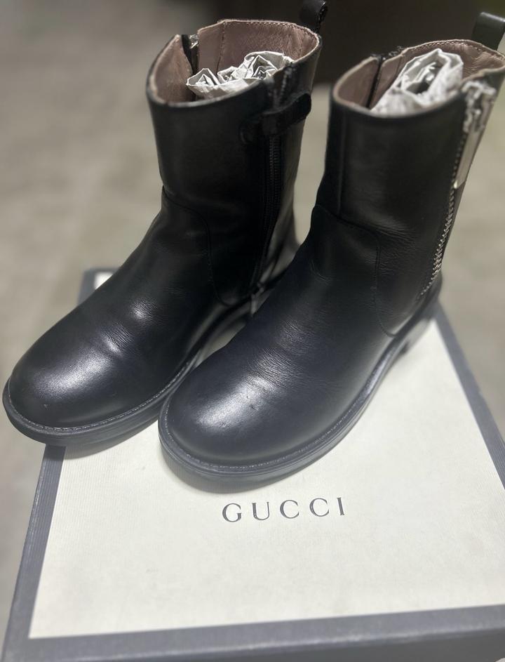 Продам кожаные ботильоны коллекции Gucci Kids. Ботильоны (челси или классические ботинки на молнии). Покупали как оригинал, кто разбирается тот поймет. Можно проверить по артикулу на фото, коробка имеется В хорошем состоянии Артикул: 552062