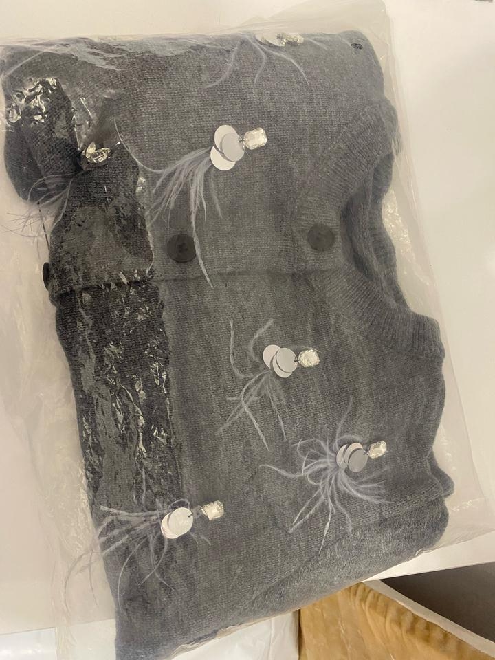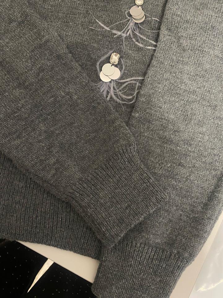 Очень красивый кардиган с перьями в серебристом оттенке! Смотрится очень красиво и нарядно Артикул: 552085