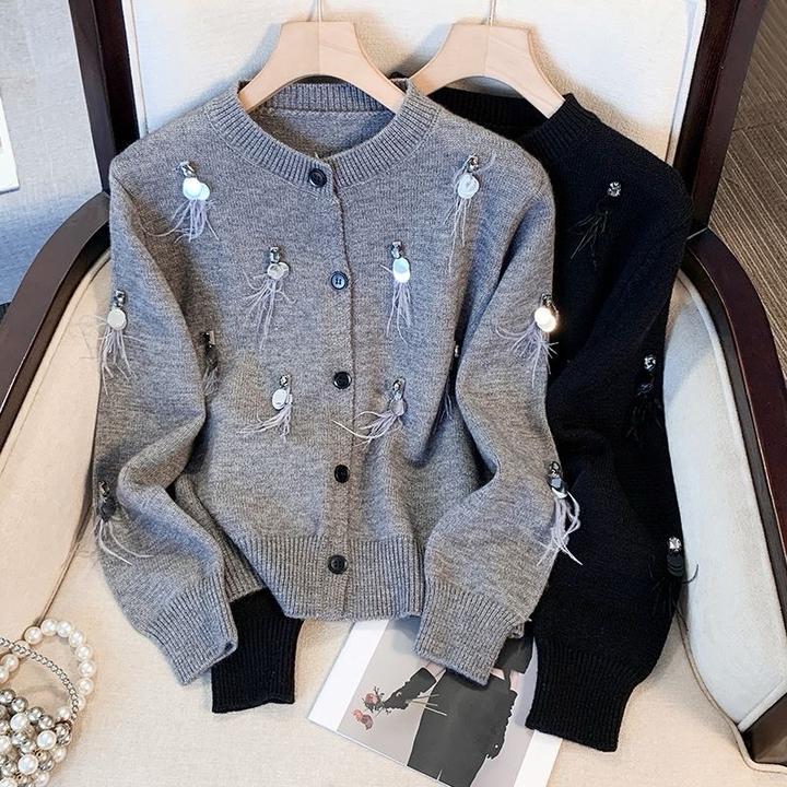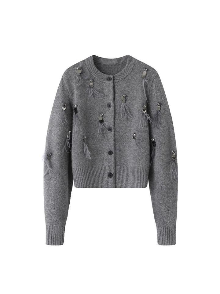 Кардиган с перьямиS