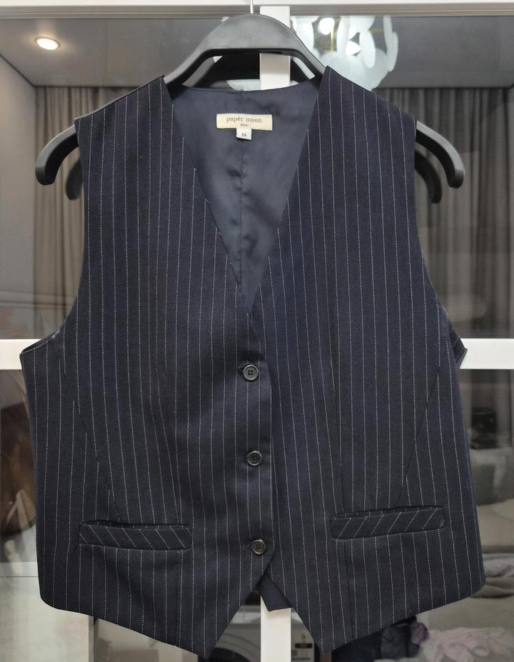 Стильный брючный костюм-тройка тёмно-синего цвета от премиального корейского бренда Paper Moon 💙 Идеальная посадка, качественная ткань и актуальный крой. Пиджак — размер фрисайз (на S, М, L) Брюки и жилет — размер M Идеально для офиса. Цена окончательная, без торга. Артикул: 552105