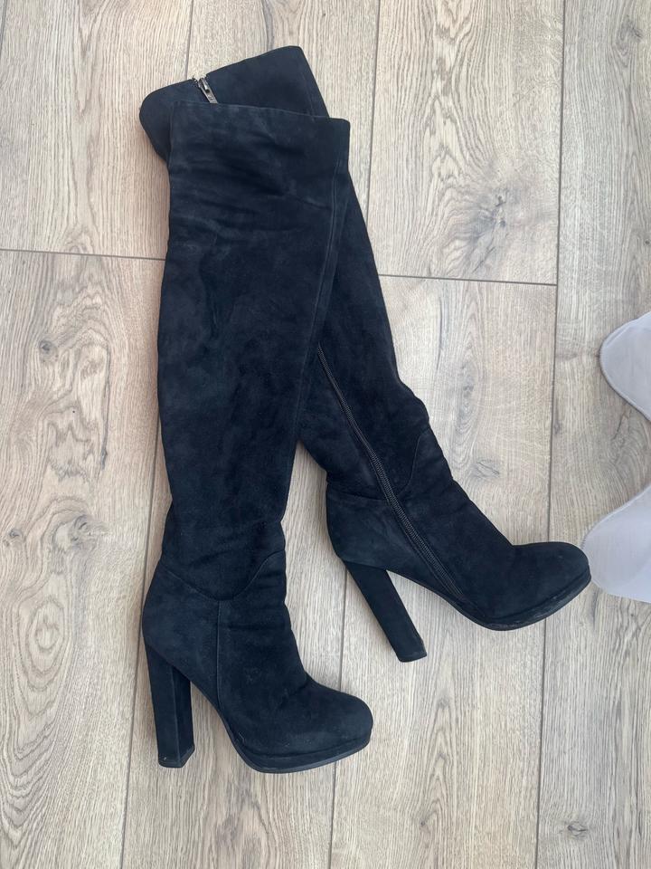 Натуральные замшевые зимние ботфорды от фирмы Aidini, замок одной пары надо менять, а так закрывается Артикул: 552134