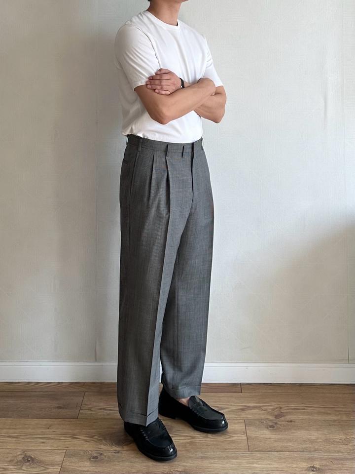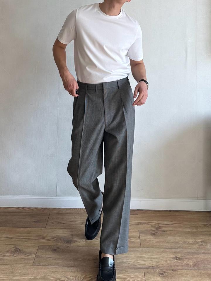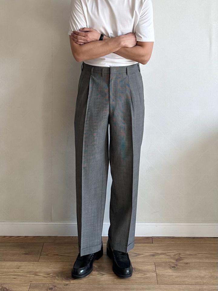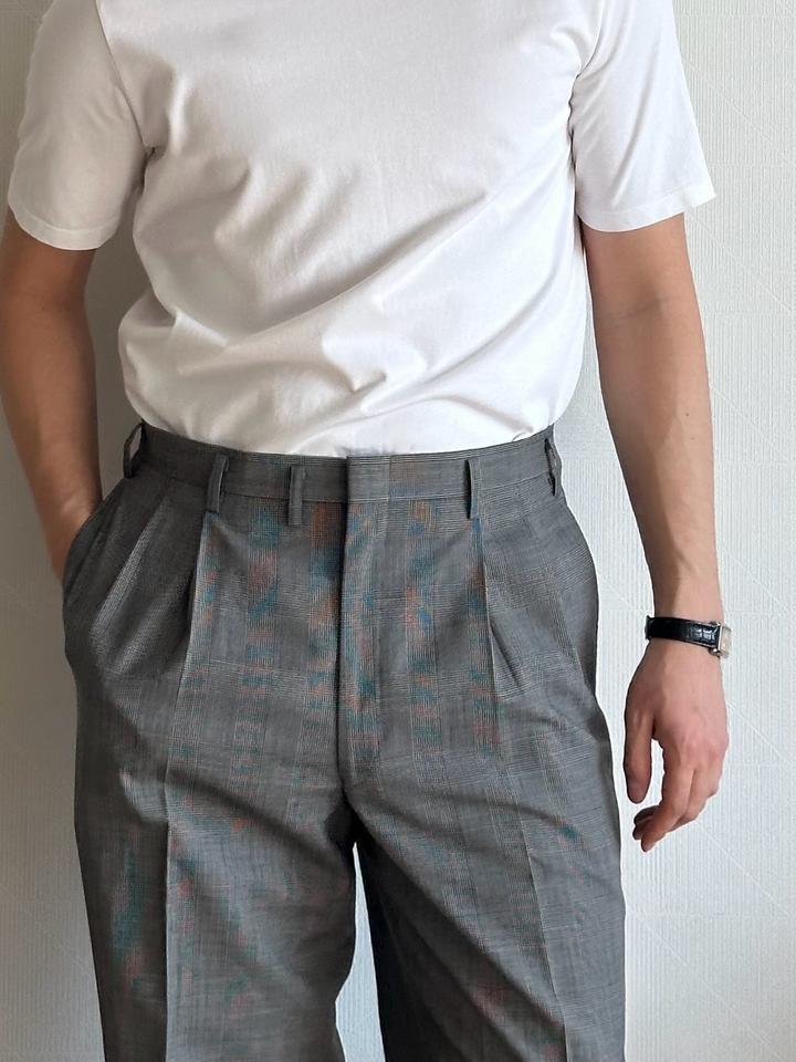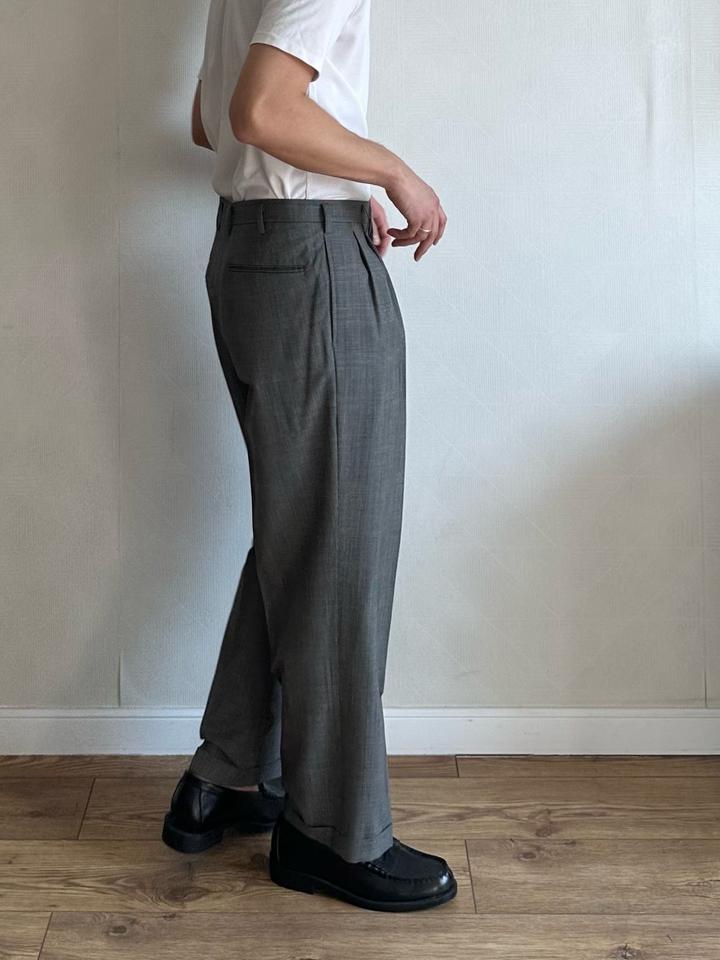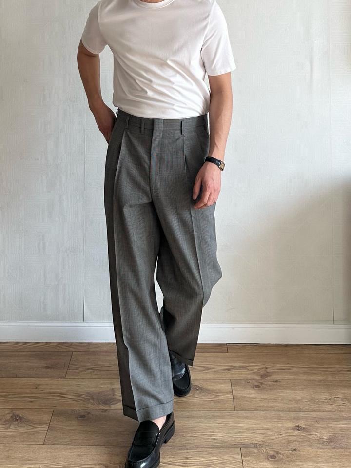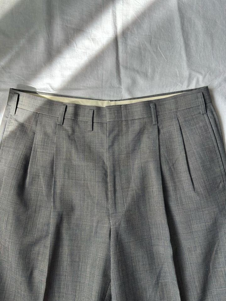 On Friday | L (W34 L30) Широкие серые брюки с высокой посадкой и защипами (принт Принц Уэльский). Материал средней плотности, 40% шерсть 60% пэ Талия 91 Бедра 120 Посадка 31 Выход 24 Длина 102 (запас +3см) Made in Japan 🇯🇵 Состояние идеальное, 10/10 Параметры модели: рост 183, размер М-Л Артикул: 552224