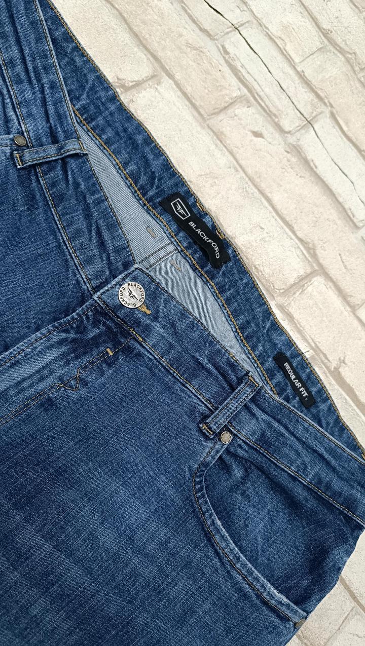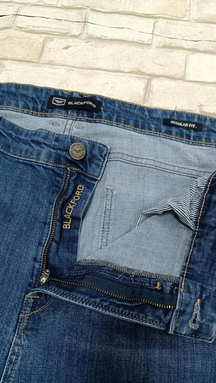 В хорошем состоянии. Джинсы Blackford прямого силуэта - классика для создания повседневного образа. Модель пошита из денима, в составе ткани хлопок с добавлением эластана. Это прочный, дышащий материал, который при правильном уходе отлично держит форму и цвет. Благодаря эластану джинсы немного тянутся при движении и хорошо садятся по фигуре. Дополнены пятью карманами, один из которых декорирован фирменной вышивкой. Дополнить модель можно футболками, рубашками или трикотажем. Артикул: 552234