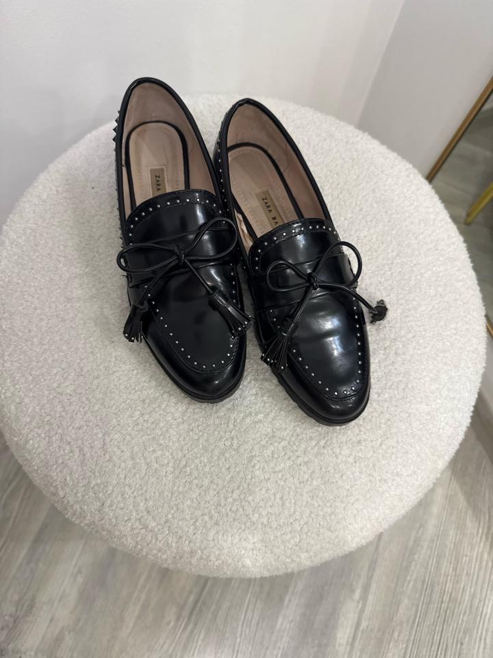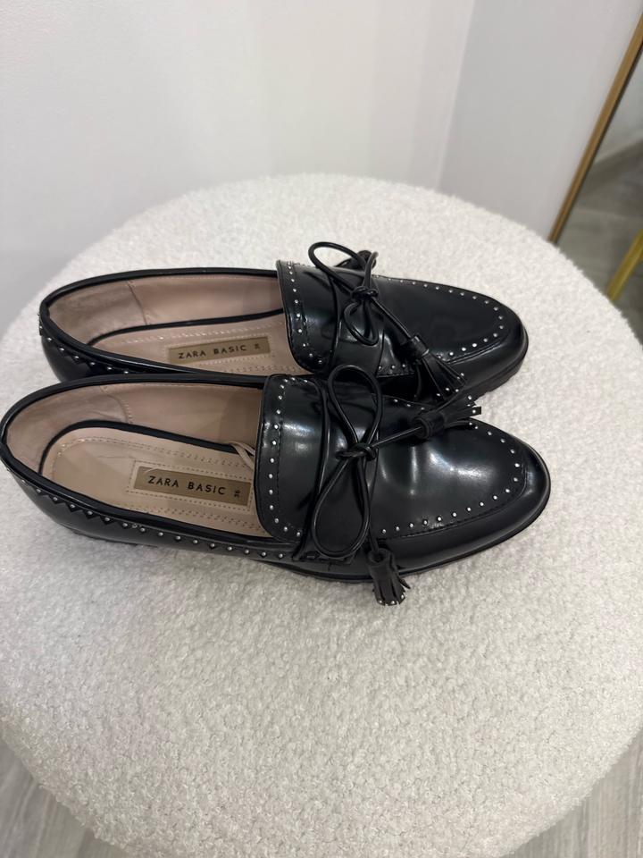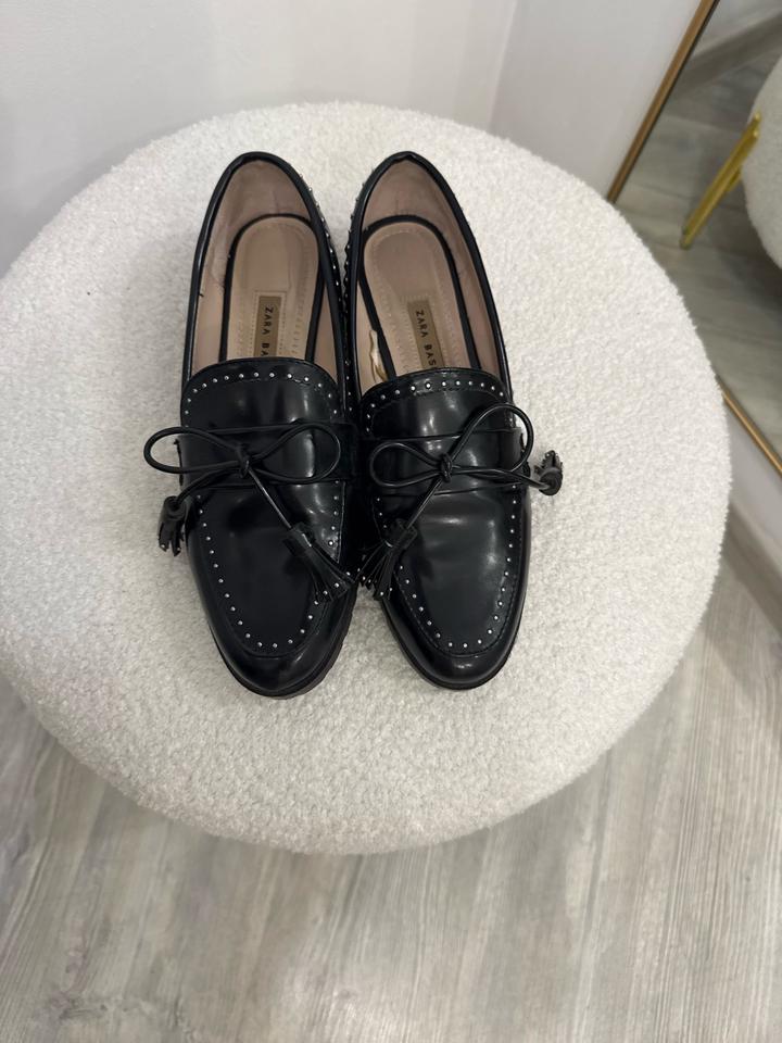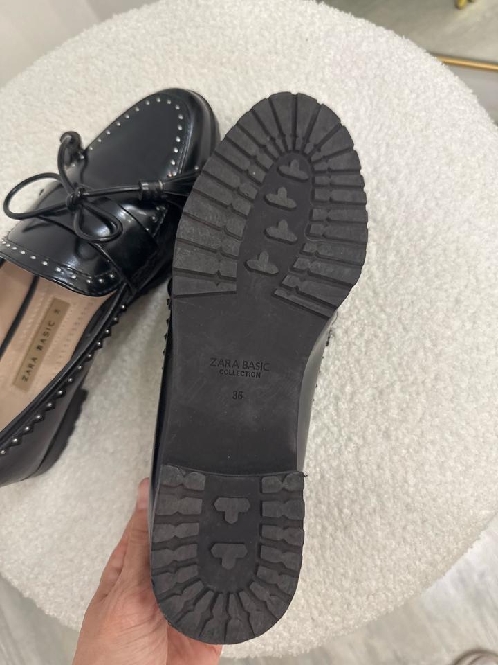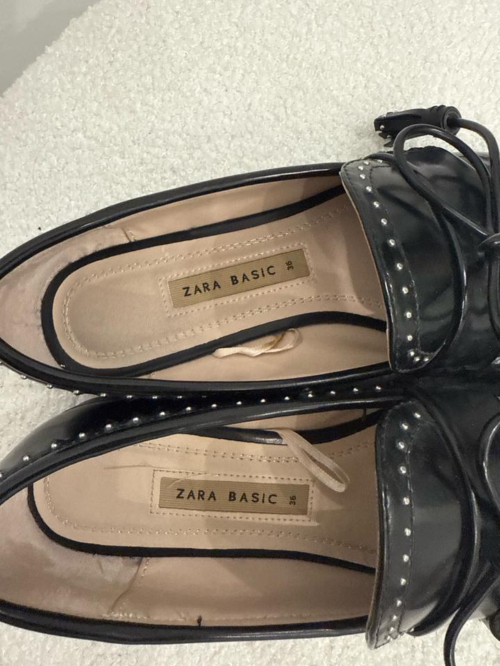 Черные из эко кожи лоферы Zara, подойдут на среднюю и узкую ногу. Артикул: 552251