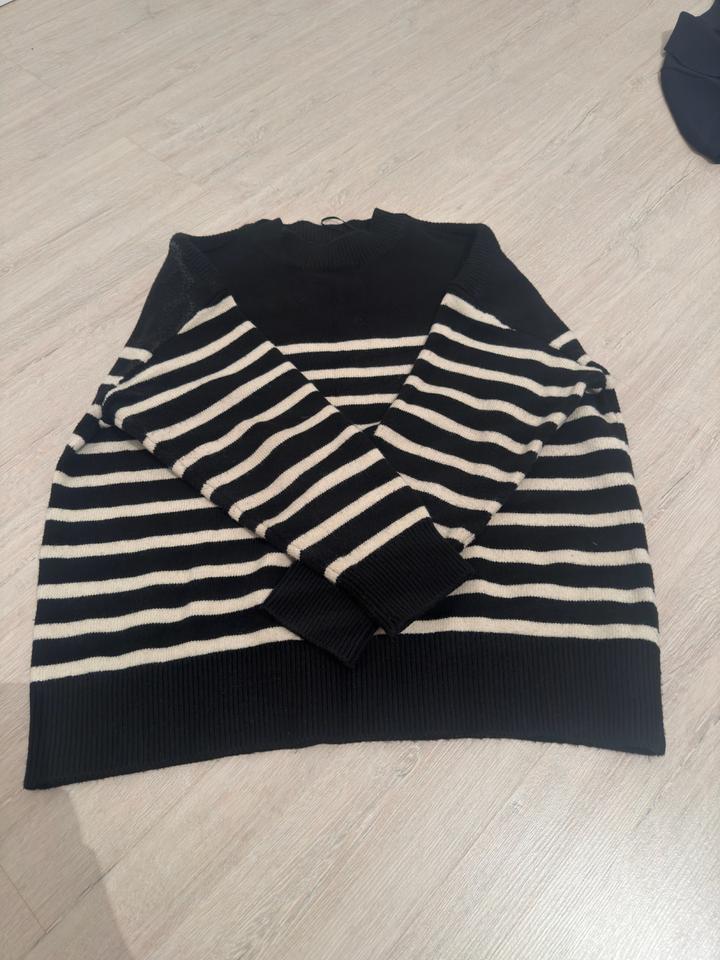 свитер в черный в белую полоску, указан размер S, но подходит до L, свободного кроя, в хорошем состоянии Артикул: 552330