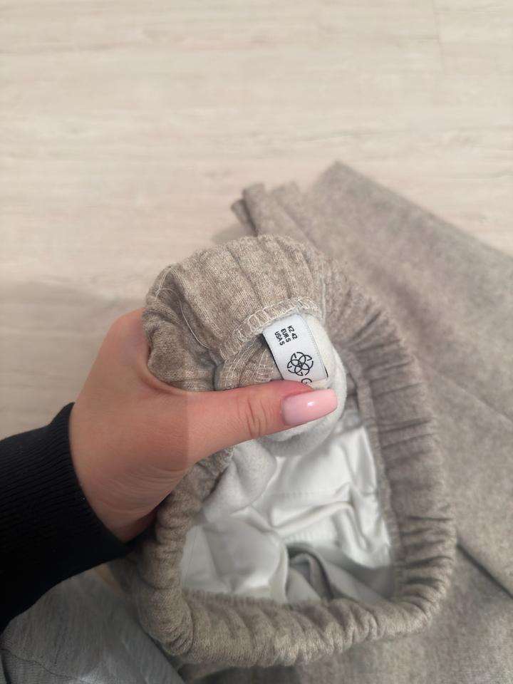 супер удобные штаны на резиночке, идеально под рост 155-165, теплый, идет прямого кроя, как классические, но более уютная, спорт шик, состояние идеальное, подходит на S/M, цвет очень красивый бежевый Артикул: 552360