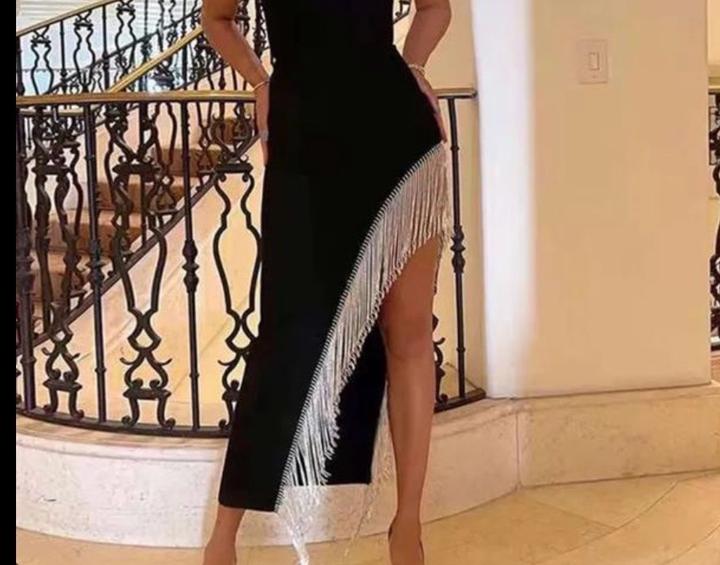 Платье черное с блестящей бахрамой Нодевалось один раз На рост 160-165 Артикул: 552363