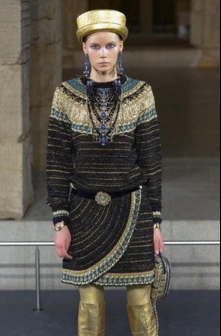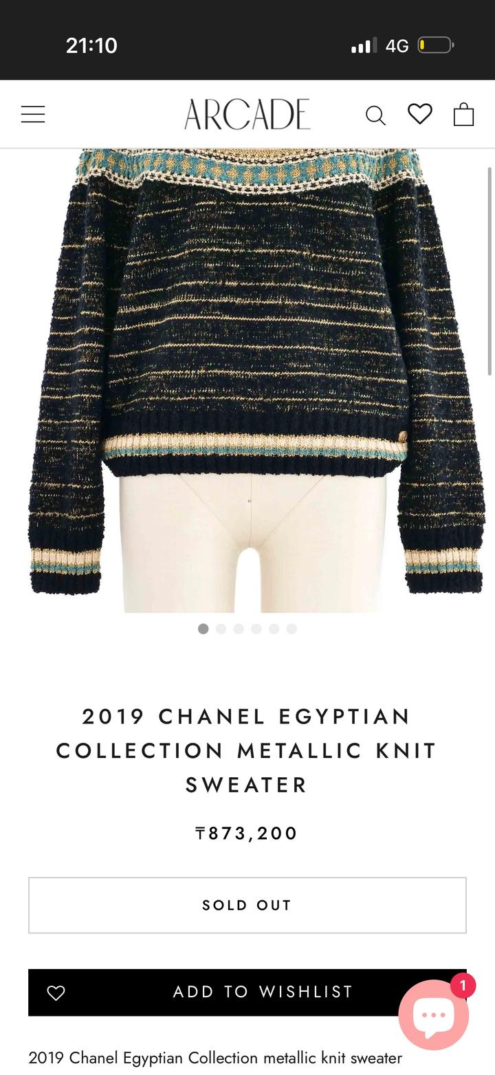 Эксклюзив: Коллекционный свитер Chanel 2019 "Egyptian Collection" 💎 Можно сказать единственный экземпляр в Казахстане. Настоящий подиумный архив (Métiers d'Art), представленный в Нью-Йорке. Это не просто одежда, а объект инвестиции.Уникальный состав: В одном изделии сочетаются 8 видов нитей и тканей Артикул: 552375
