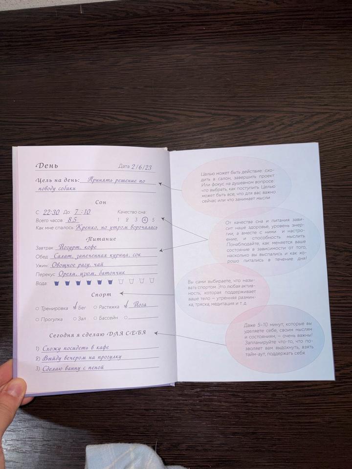 Хороший почти новый блокнот для записи задач на день, чувств, желаний и т д. Использована только одна страница. Остальные супер новые. Артикул: 552435