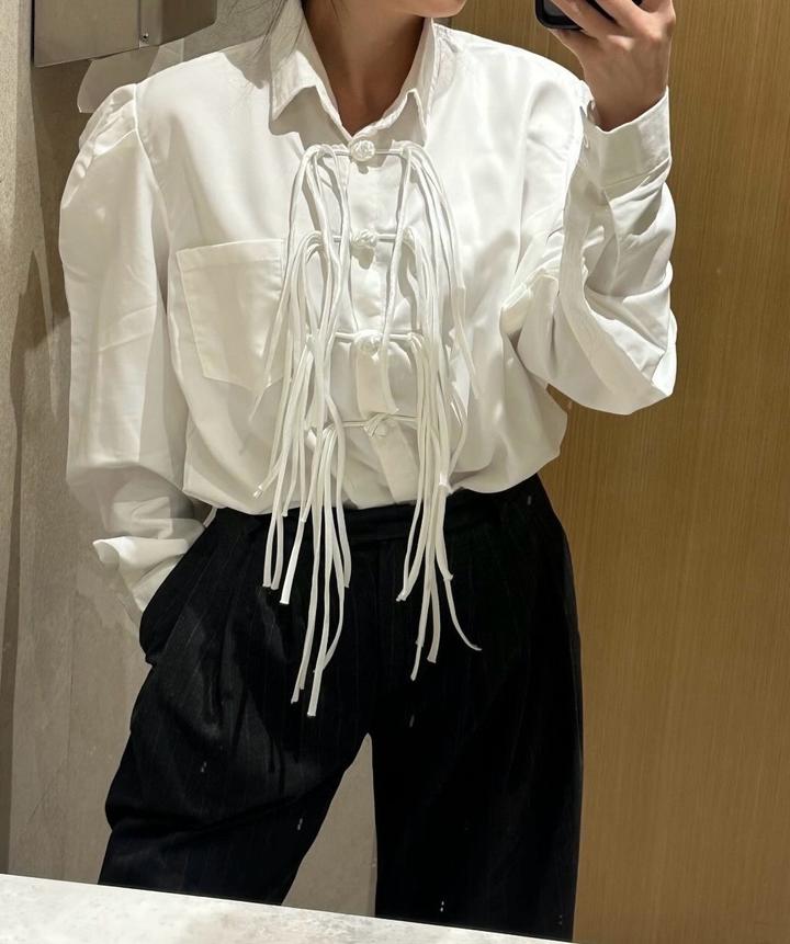 Белая, Стильная рубашка в китайском стиле (размер S/M/L)One size