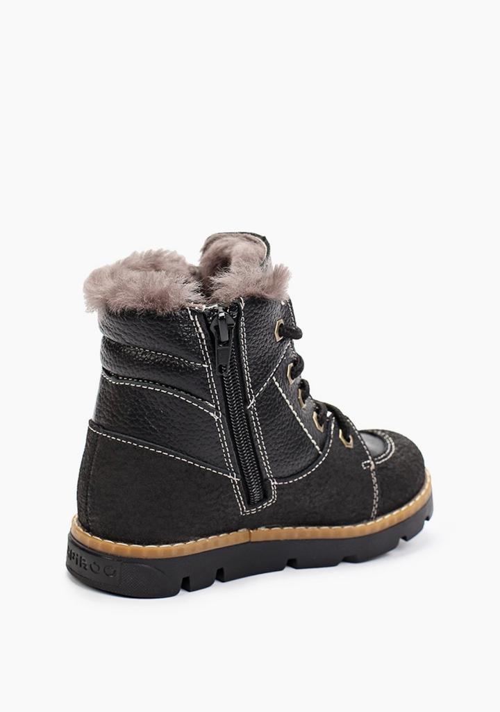 Черные зимние ботинки в отличном состоянии, снаружи натуральная кожа, внутри цигейковый плотный мех. Протекторы на носах (неубиваемые, даже следов не осталось после ношения 1 сезона). Чуть маломерят будто, на аккуратную ножку 16-17см (на вырост до конца сезона, середины весны). Артикул: 552561