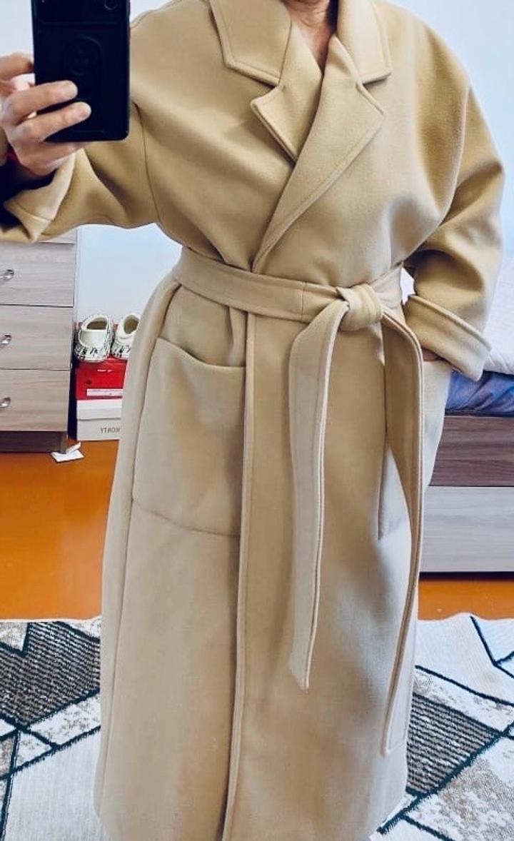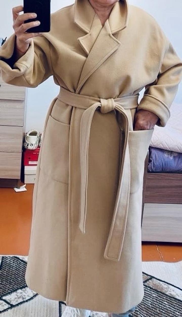 Базовое бежевое пальто на запах подходит на все размеры, надевалось 2 раза, в идеальном состоянии. Размер стандарт. Артикул: 552564