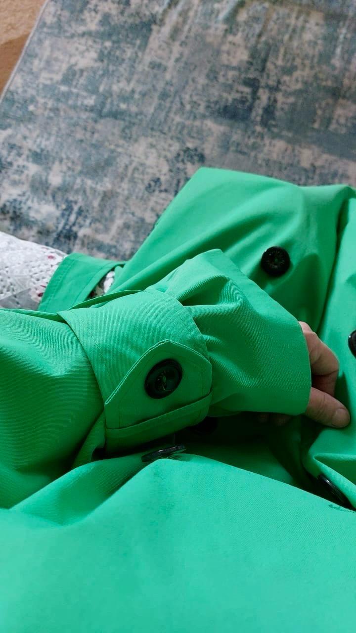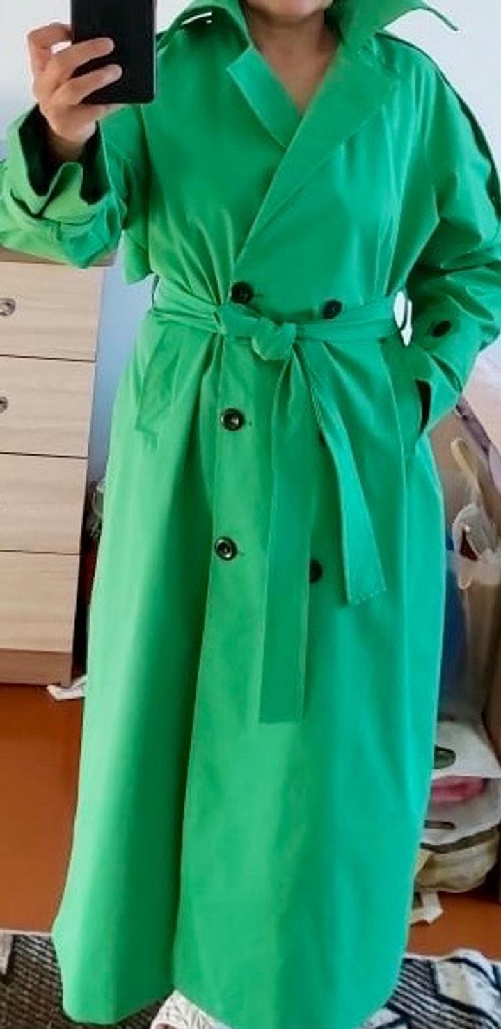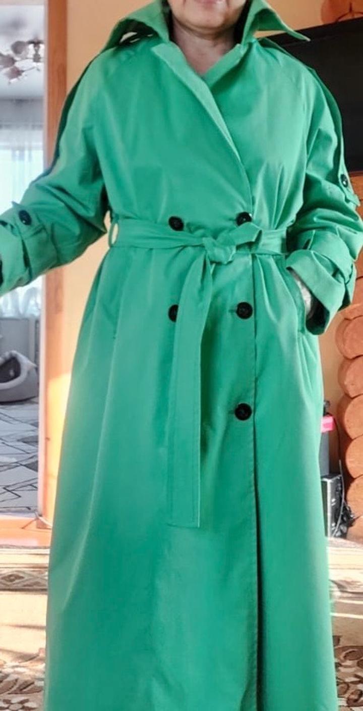 Стильный базовый плащ-тренч в идеальном состоянии, цвет красивый зеленый, надевался 2-3 раза. Размер стандарт. Длина тоже шикарная, качество хорошее, без дырок, пятен и запаха. Не линяет, не скатывается. Артикул: 552587