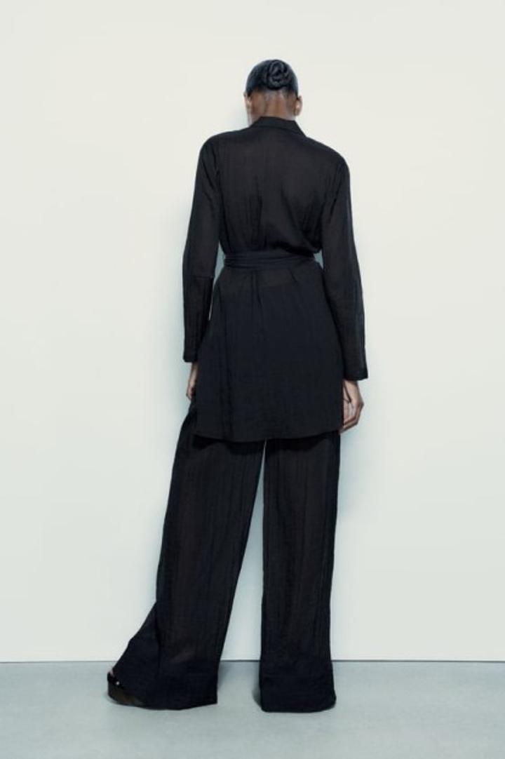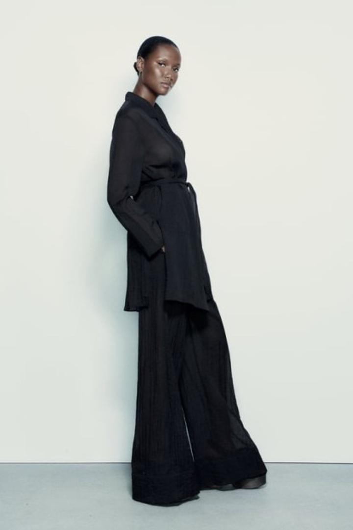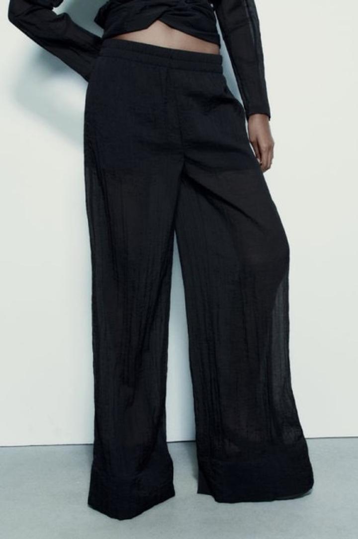 Полупрозрачные кимоно и брюки из вискозной смеси. Эластичный пояс. Боковые карманы скрыты по шву. Подкладка. Широкая нога. Артикул: 552615