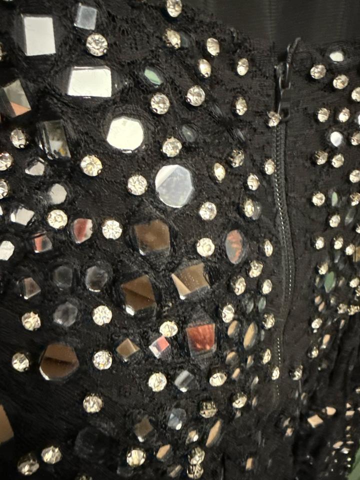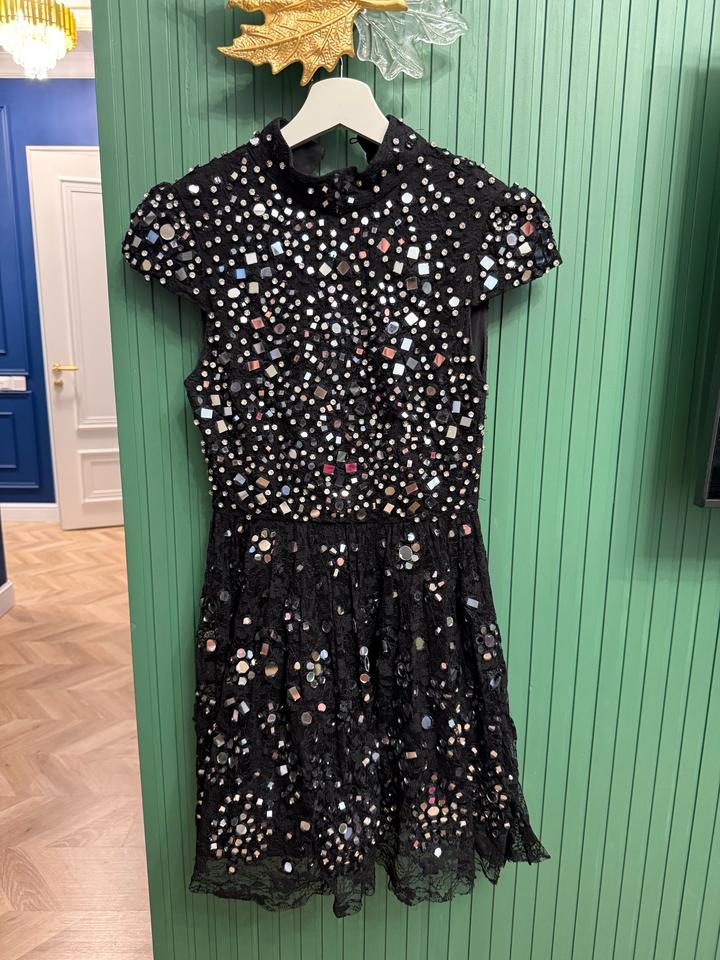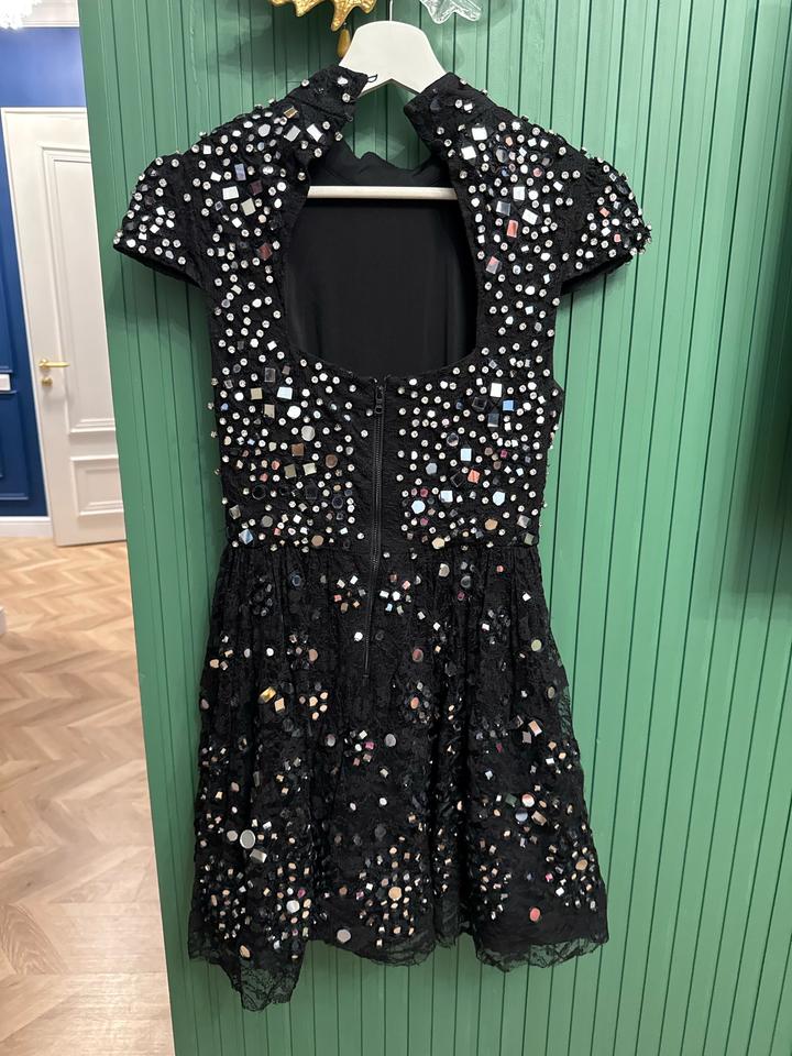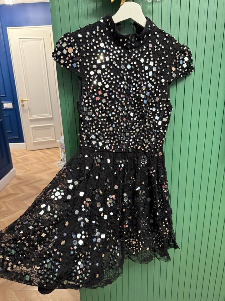 чёрное платье с зеркалами и кружевной отделкой от бренда Alice + Olivia.XS