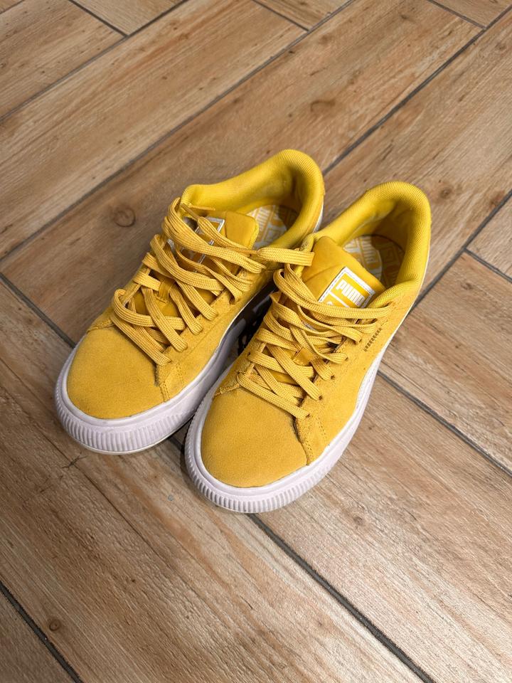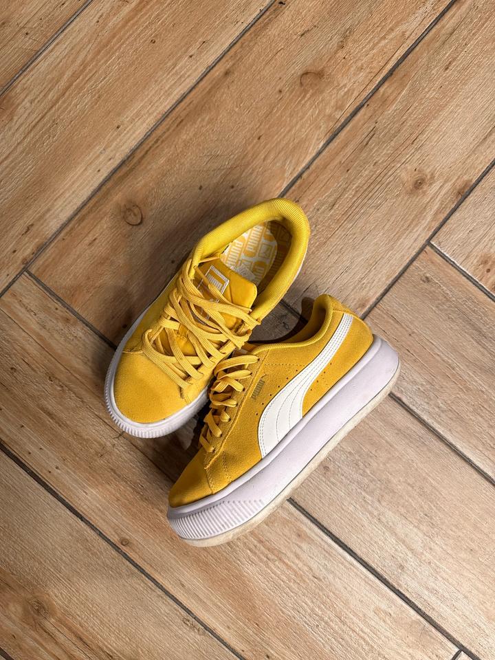 Желтые Замшевые кеды Puma. Этой расцветки нет в KZ. Покупала заграницей. Ношены всего несколько раз. Почти идеальное состояние. Размер 3+7### ### ## ##ги и не влезаю Артикул: 552734