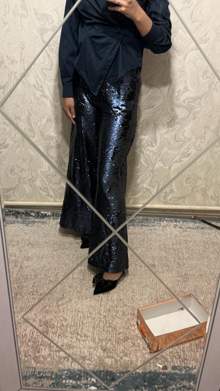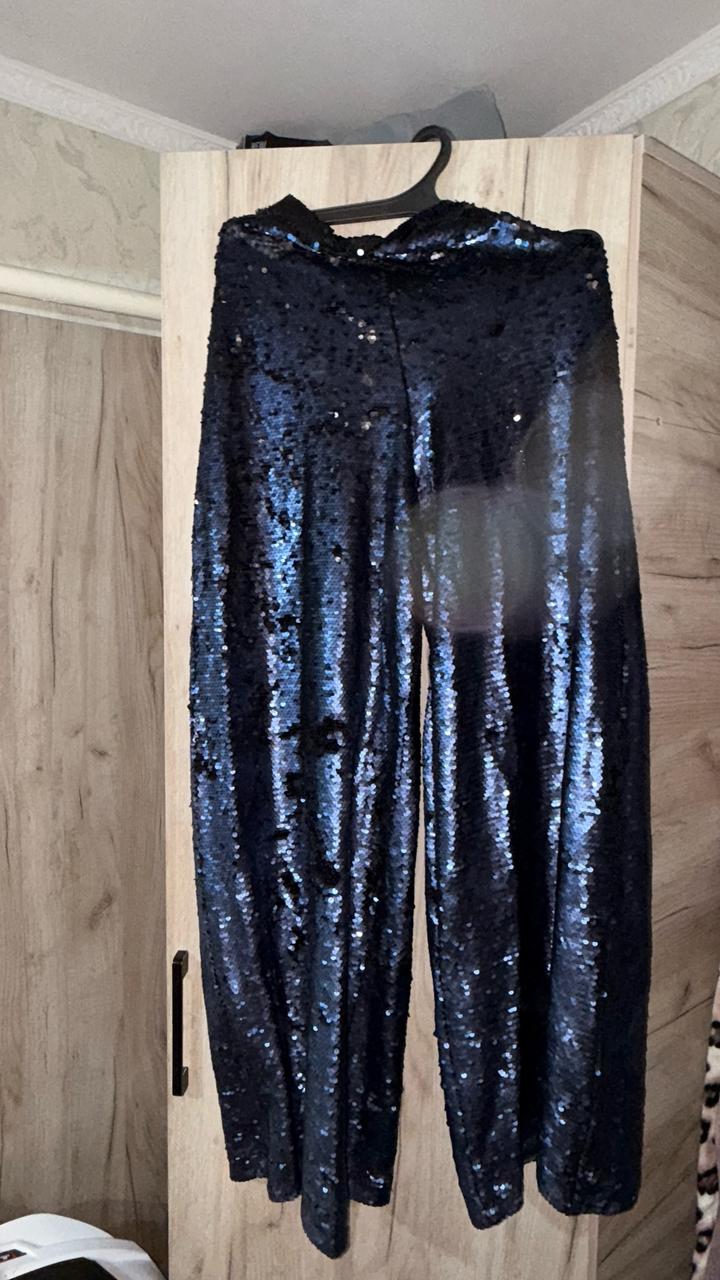 Брюки клеш с пайетками темно синего цвета Замок не работает Рр 42 Артикул: 552908