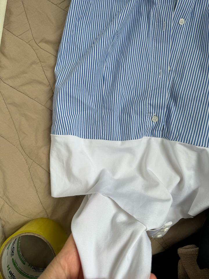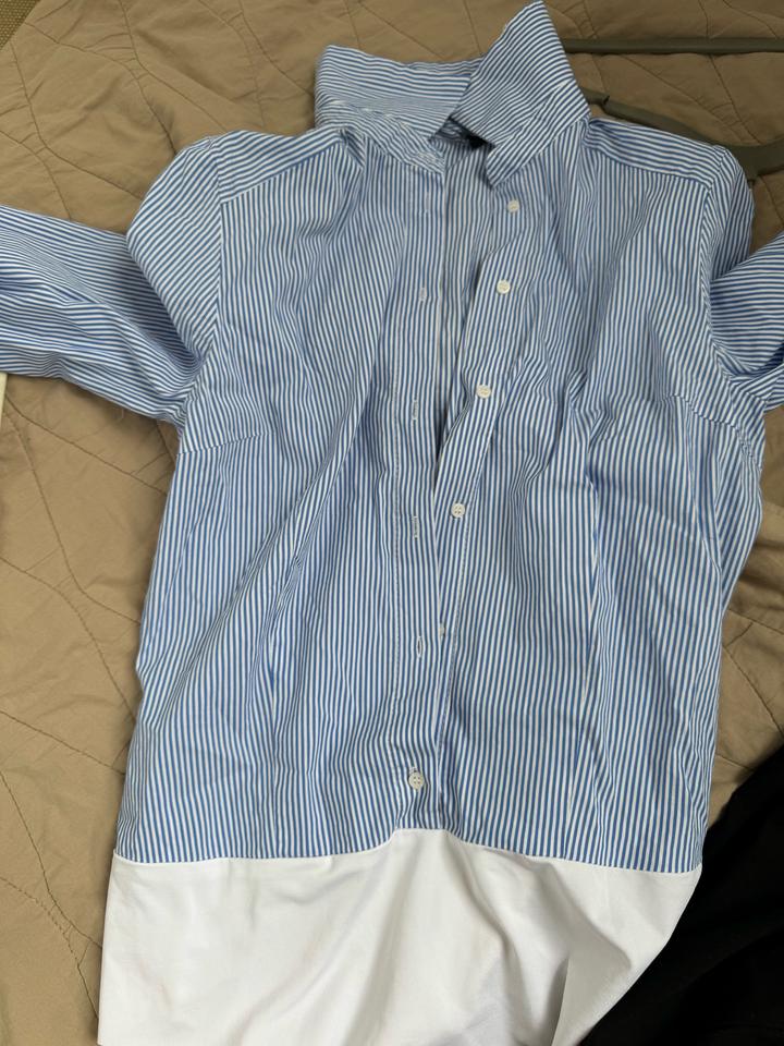 Рубашка классная. Снизу боди, держит форму, есть подплечники. Один выход в офис. Указан размер Л. По факту на с м сядет хорошо. Артикул: 553016