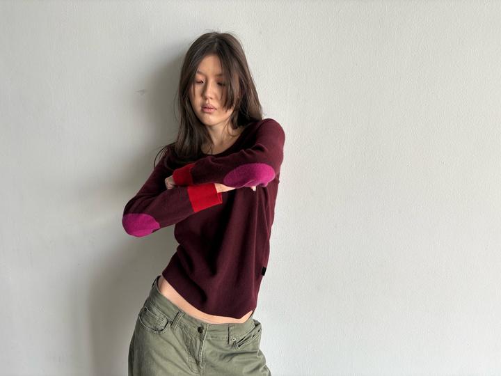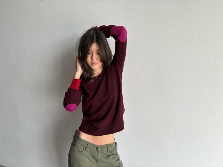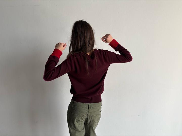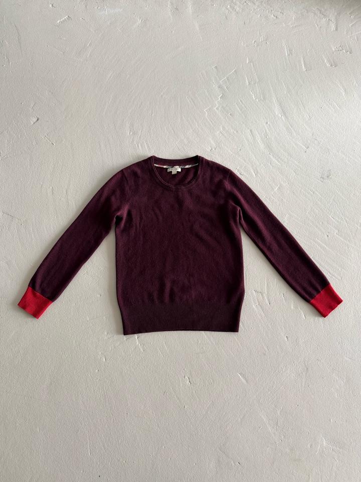 Burgundy cashmere sweater from Burberry 🤎 Длина 62 см Длина рукава 57 см Плечи 42 см Обхват груди 92 см Модель: рост 170, ог 81, от 66, об 94 Артикул: 553123
