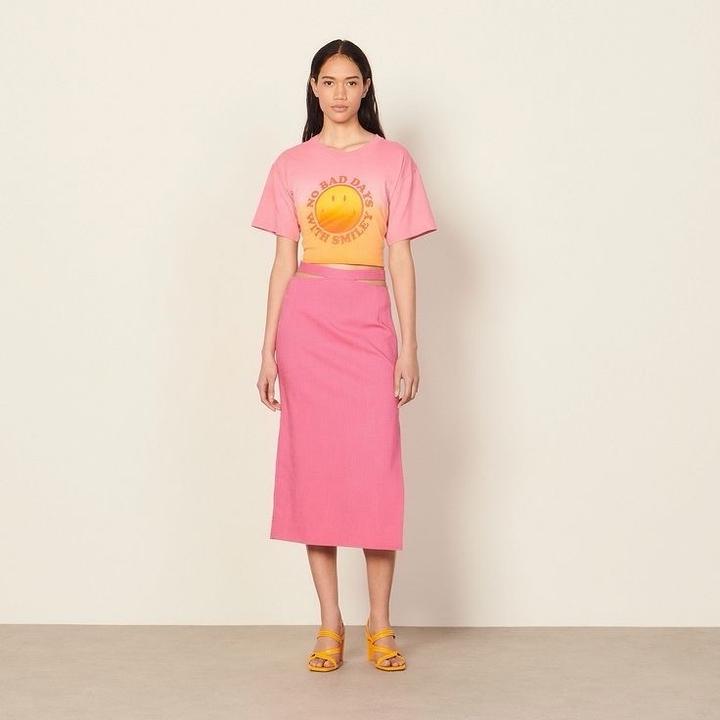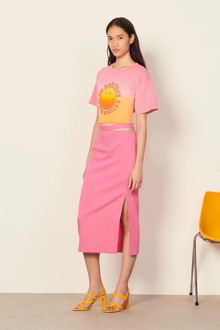 Розовая юбка Sandro с разрезом сбоку. Размер 40 (французский) Артикул: 553320