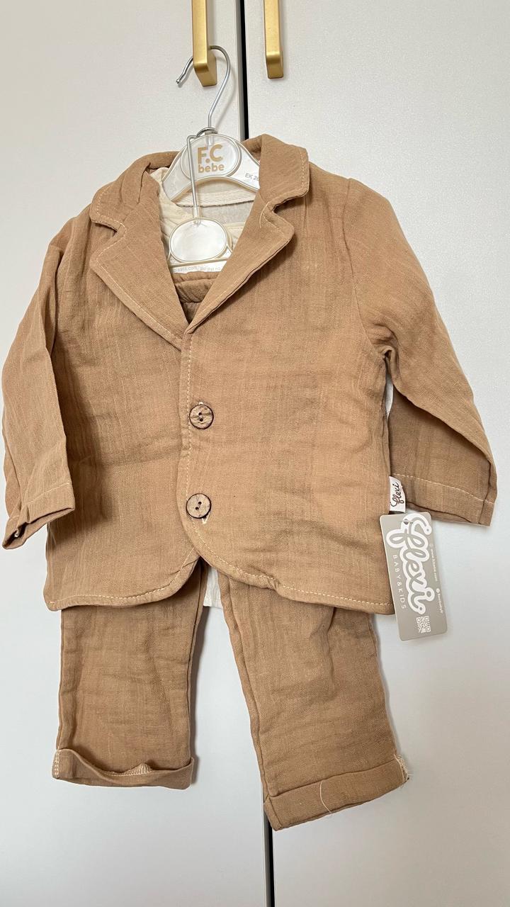 Льняной костюм для мальчиков до года. Можно и на тусау кесер. Производство Турция. Покупали за 18.000 продаем за 10.000 новый ни разу даже не примерили. Артикул: 553403