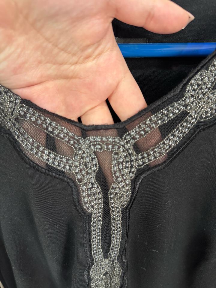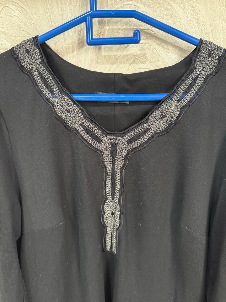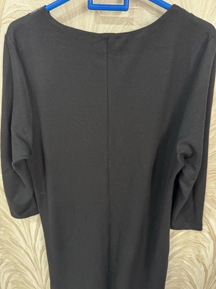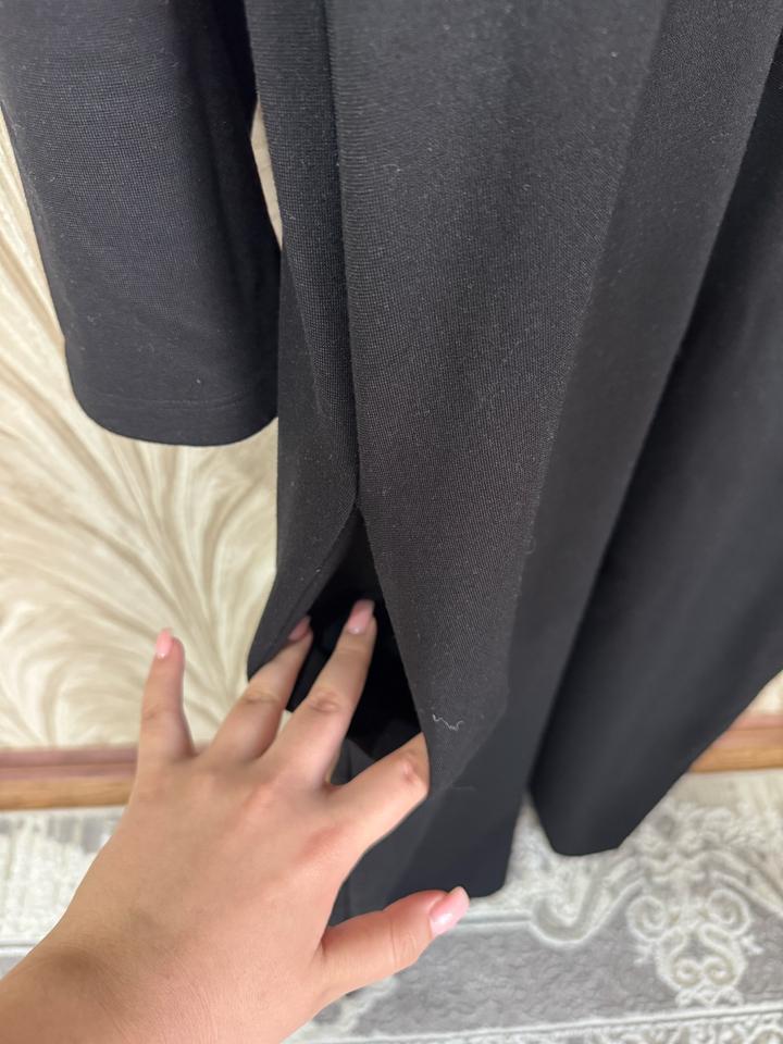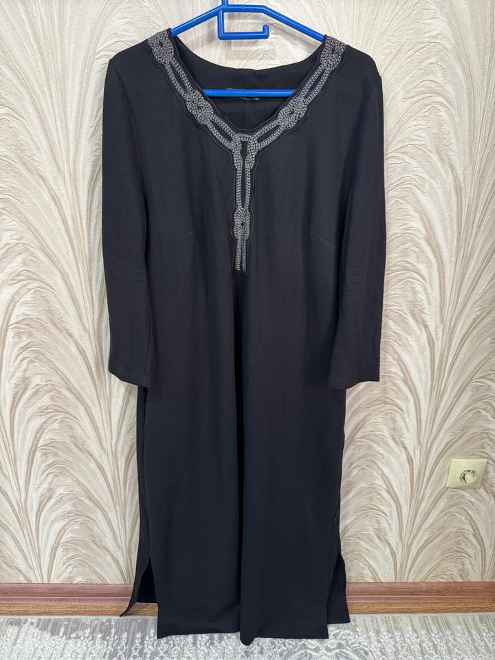 Ношеное платье,имеються карманы.Это элегантное черное платье отлично подойдет как для повседневных выходов, так и для торжественных случаев. Оно сочетает в себе классический крой и утонченные детали. • Фасон: Прямой крой с боковыми разрезами для комфортной ходьбы. • Особенности: V-образный вырез украшен стильным серебристым орнаментом, который визуально стройнит. • Рукав: Полноразмерный (длинный). • Цвет: Глубокий черный. • Состояние: Отличное. Артикул: 553474