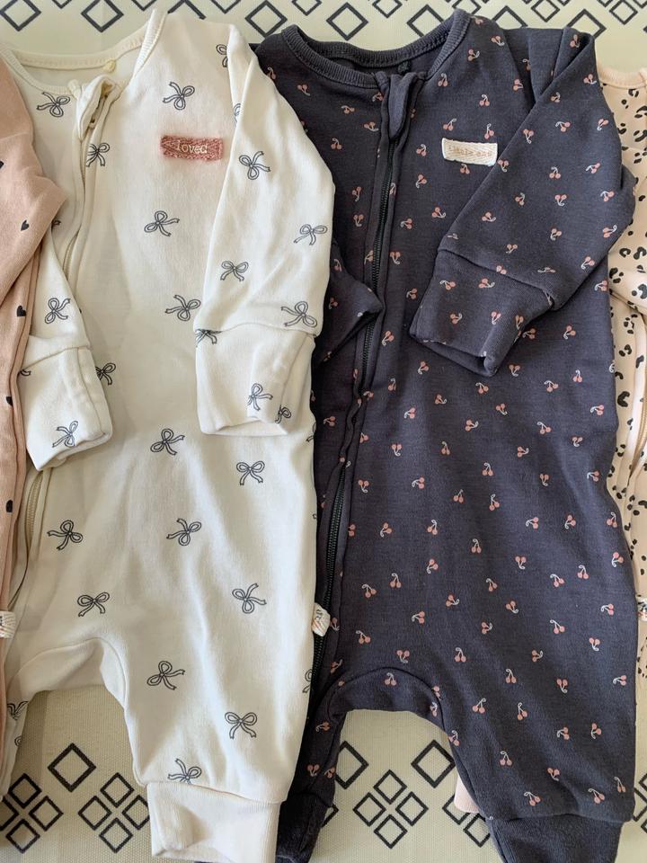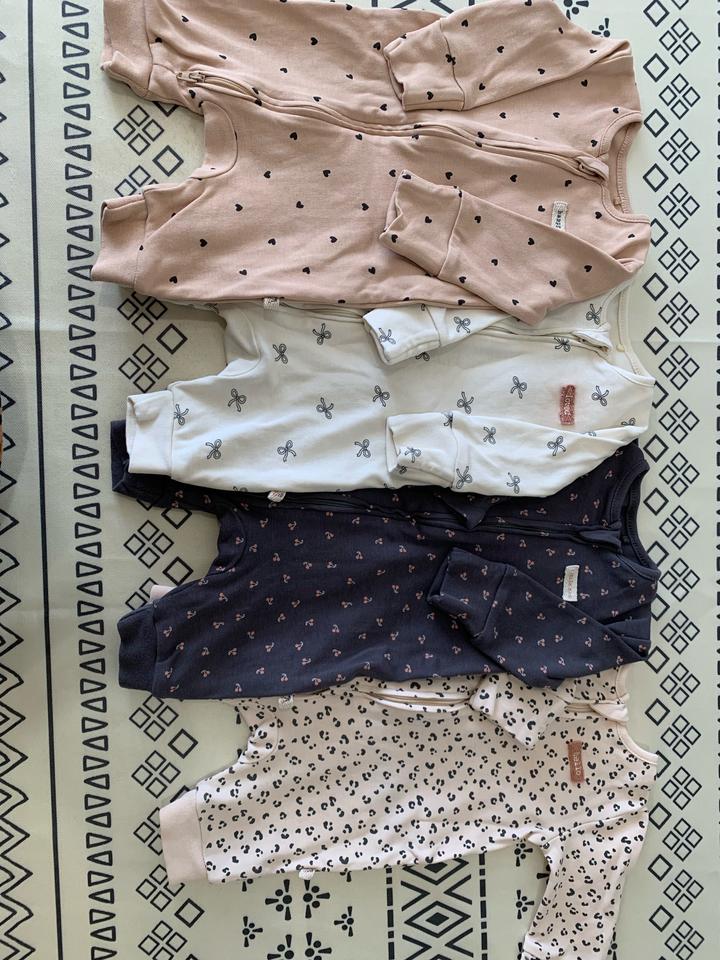 Набор из 4 ромперов с длинным руковом для новорожденных next. Ростовка 56 см. Удобно для роддома, рукава подгибаются в антицарапки. На ромпере с бантиками возле вшитой бирочки немного окрасилось. Приобретали на официальном сайте next Артикул: 553493