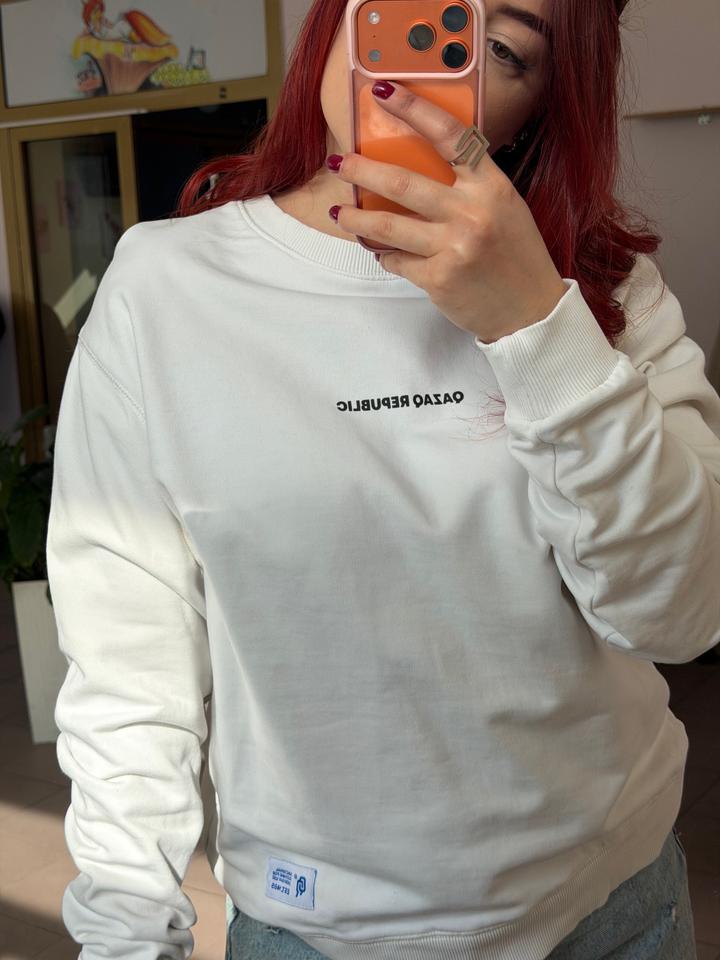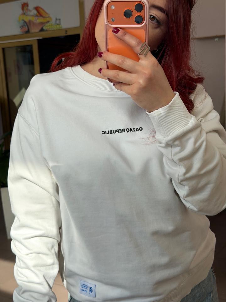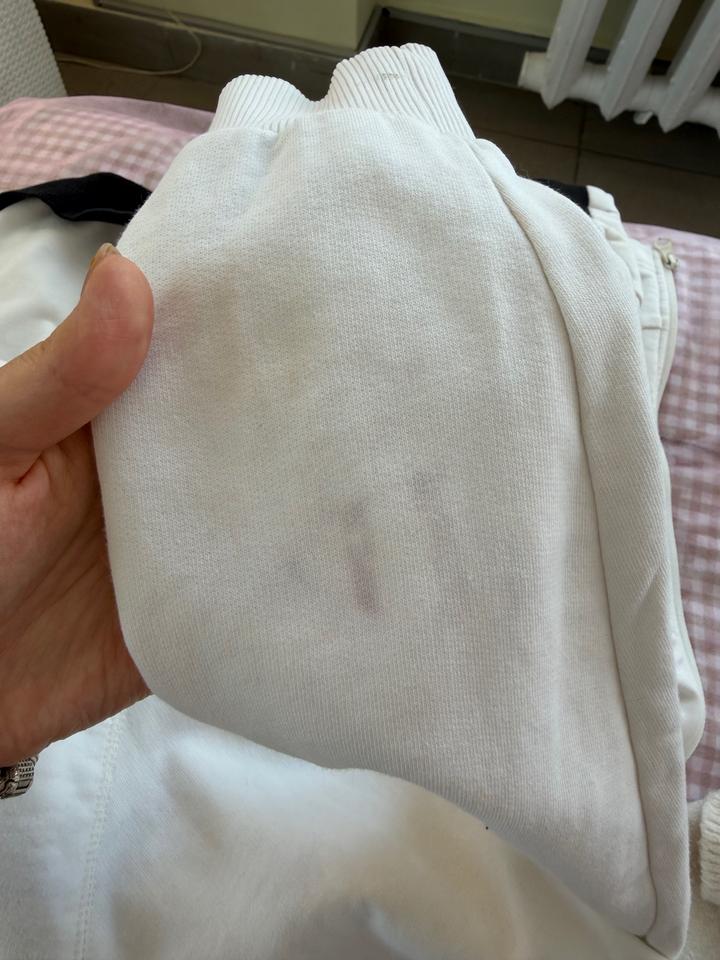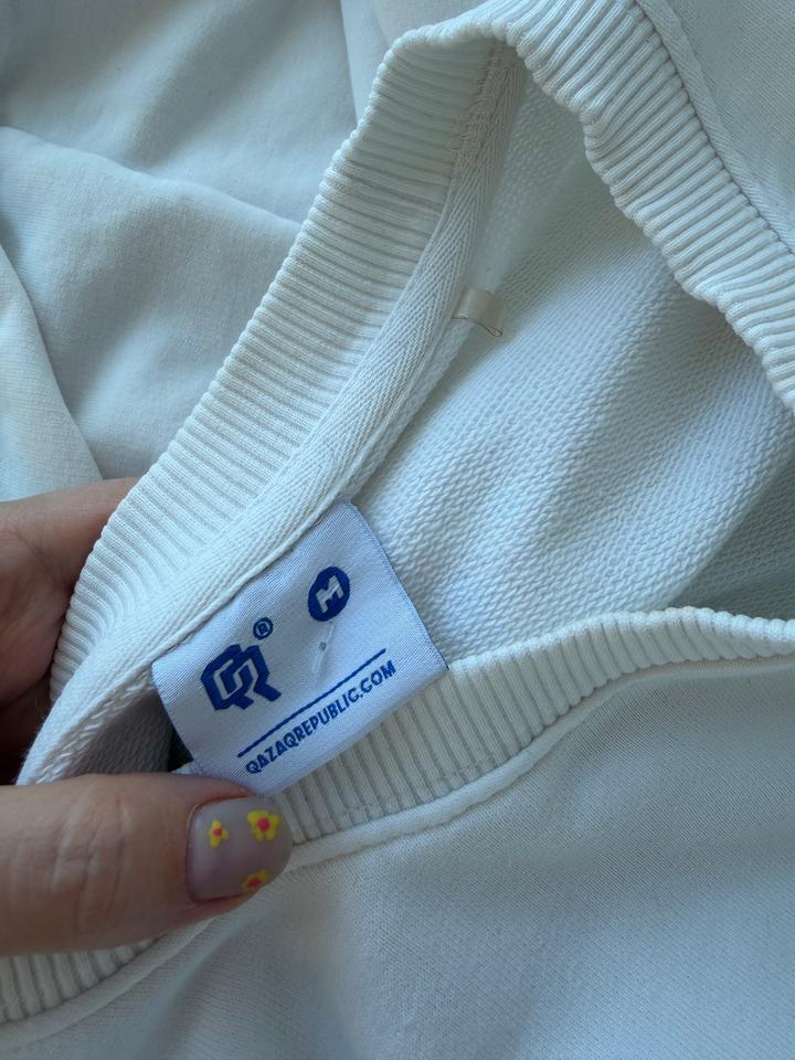 Размер м, есть одно маленькое еле заметное пятнышко, его видно на фото! Специально близко сфотографировала, в остальном свитшот как новый Артикул: 553546