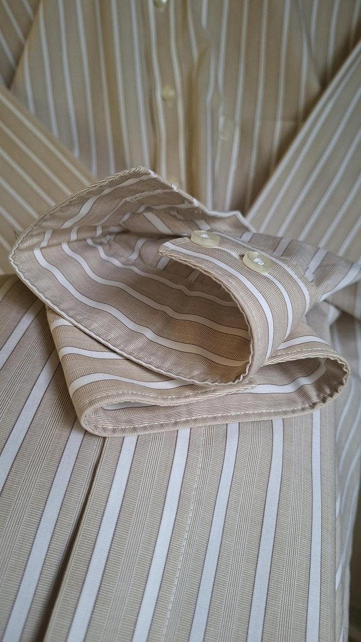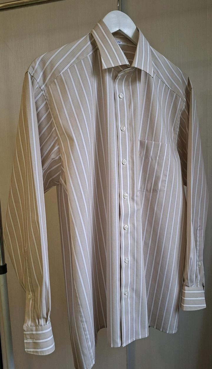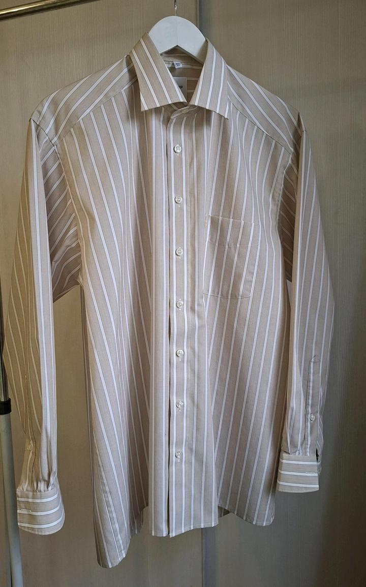 Продам очень красивую рубашку от немецкого бренда Olymp серии Luxor! Произведено и пошито в Германии! Абсолютно новая, аж хрустит! Рубашка соткана из высококачественного 100% хлопка, в тонкой, но очень прочной выделки, линии слегка фактурные! Идеально сидит и смотрится, модель modern fit, вышитая буква О на нагрудном кармашке! Рубашка в бежевом цвете с белыми и кофейный линиями! Маркировка 16,5/42, на 52/54 Артикул: 553581