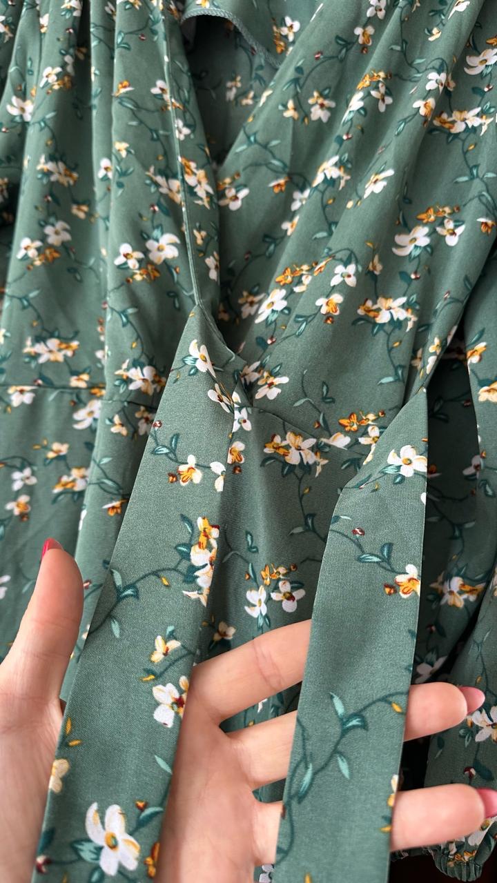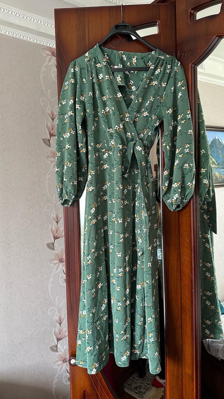 Платье в цветочный принт в отличном состоянии 🌿 Надевалось пару раз Лёгкая приятная ткань, красиво струится Фасон на запах с поясом — подчёркивает талию и делает фигуру более женственной ✨ Идеально подойдёт на осень и весну 🍂 Размер: М Артикул: 553598