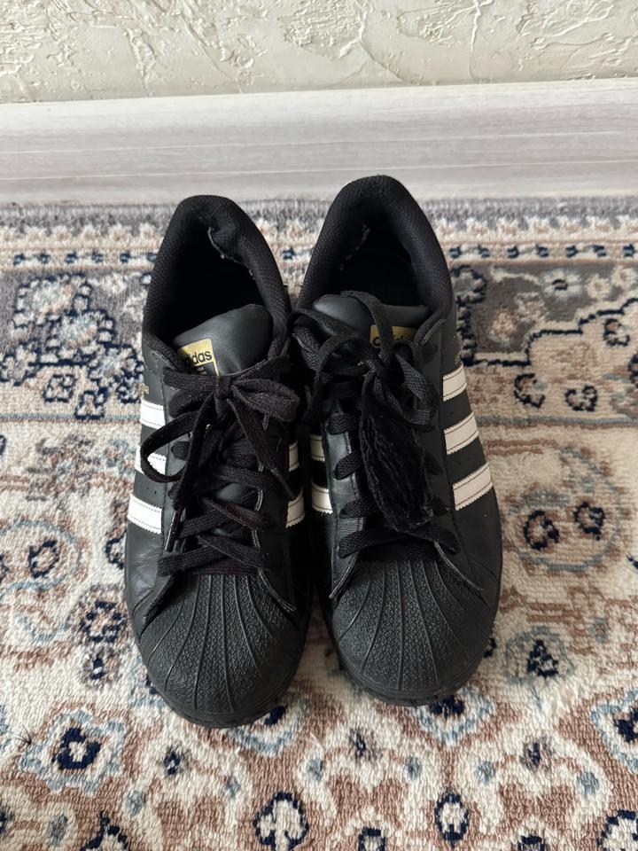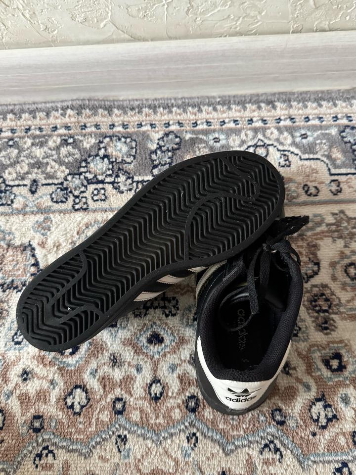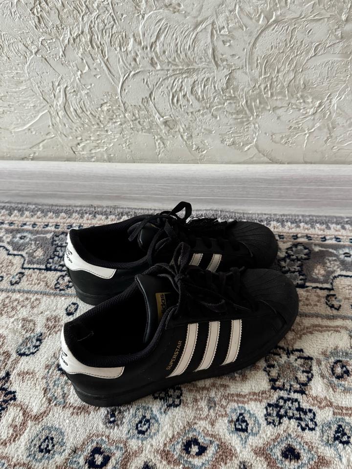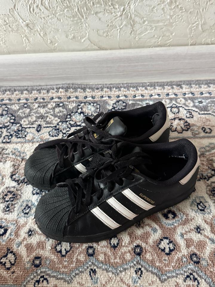 черные суперстары , 100% оригинал , покупались в бутике адидас , в отличном состоянии , очень удобные и качественные , вообще не маркие , если есть вопросы пишите , отвечаю быстро Артикул: 553629