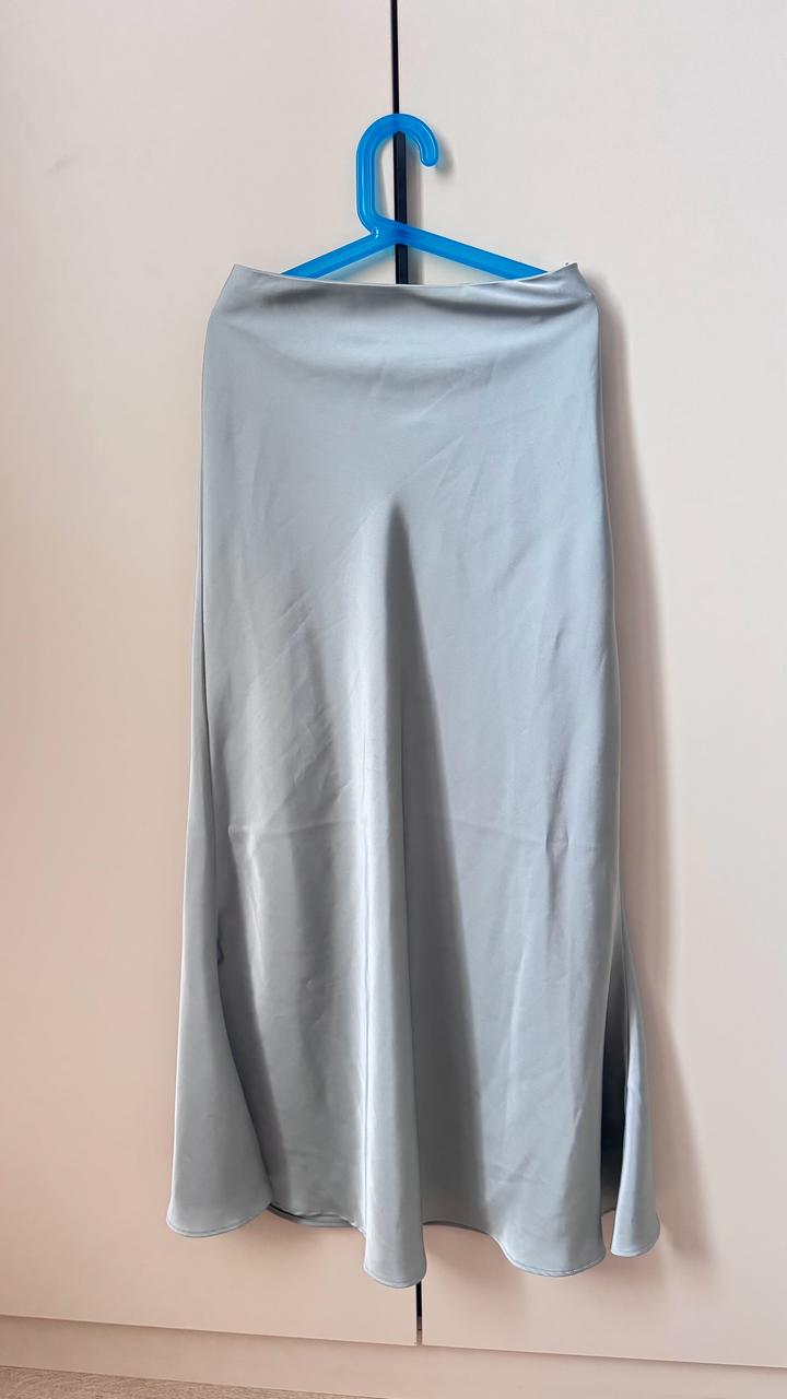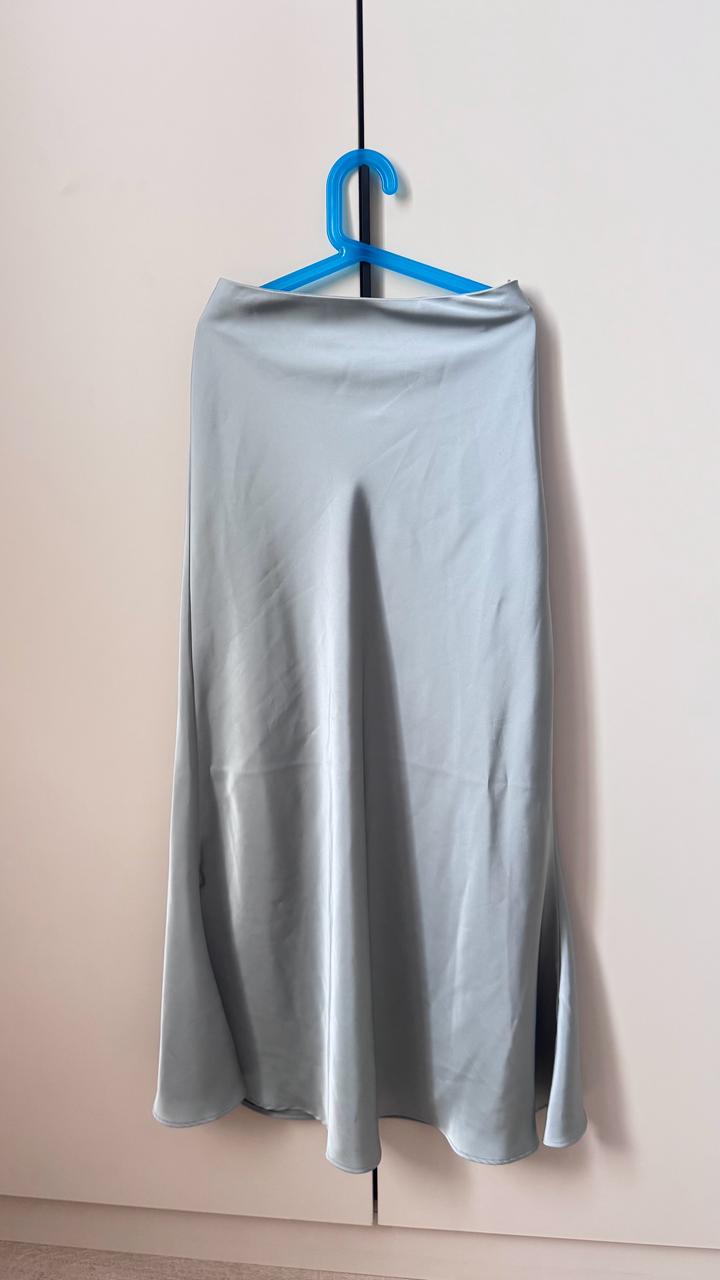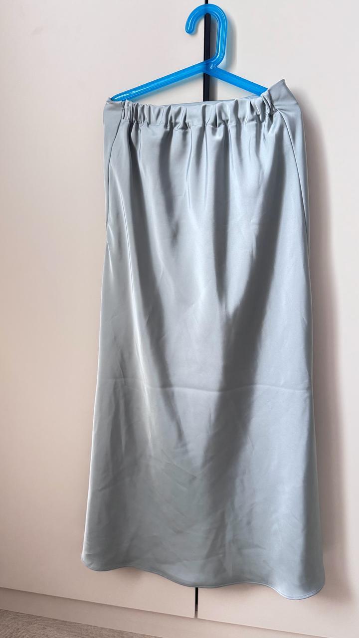 Юбка атласная, цвет мятный, сбоку на замке, подклад есть, одета 1 раз, в идеальном состоянии, производство Корея Артикул: 553646