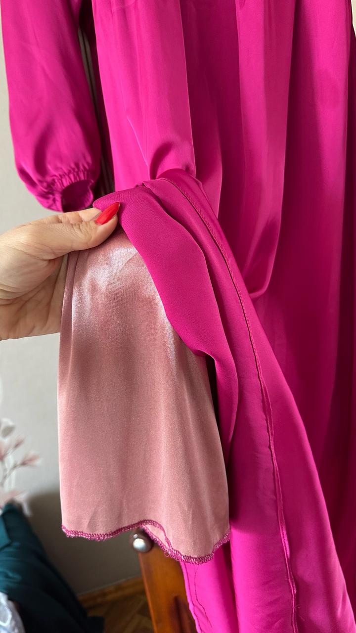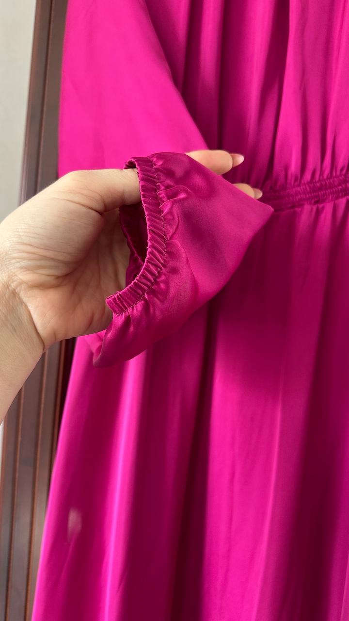 Яркое платье в насыщенном розовом цвете 💖 Состояние отличное, надевалось пару раз Лёгкая струящаяся ткань, красиво переливается ✨ Свободный верх и акцент на талии делают силуэт женственным Подойдёт как на мероприятие, так и на выход 🌸 Размер: XL подойдут на M и L Сама ношу M и платье идеально села Артикул: 553686