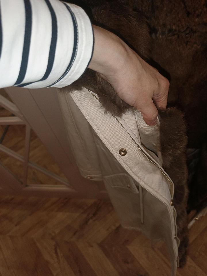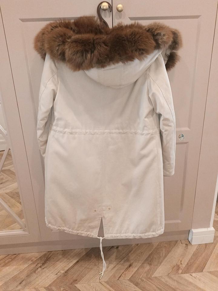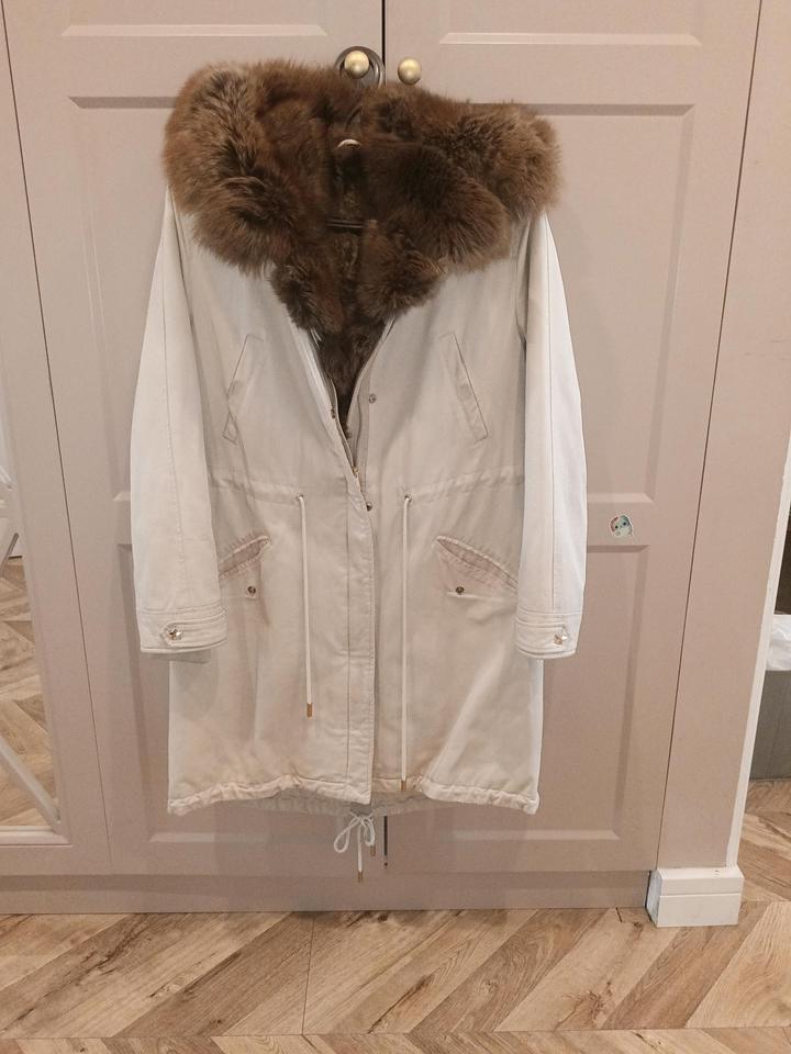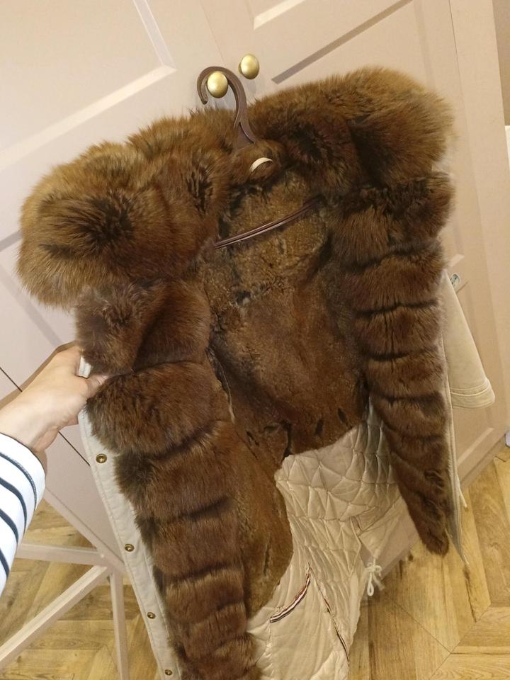 Парка-трансформер со съемной подстёжкой с мехом. Капюшон и впереди вдоль молнии - мех песца, спинка и перед до талии - мех кролика, ниже талии и рукава из синтепоне, верхняя часть выполнена из хлопка. Длина - до колена, задняя часть длиннее. Можно снять подстёжку и носить отдельно как хлопковую парку. Приобреталась в Санкт-Петербурге в магазине shinsilla furs, они сами отшивают на производстве. Достаточно тяжёлая, но качественная, добротная, красивая. Верхнюю часть из хлопка можно стирать. Артикул: 553752