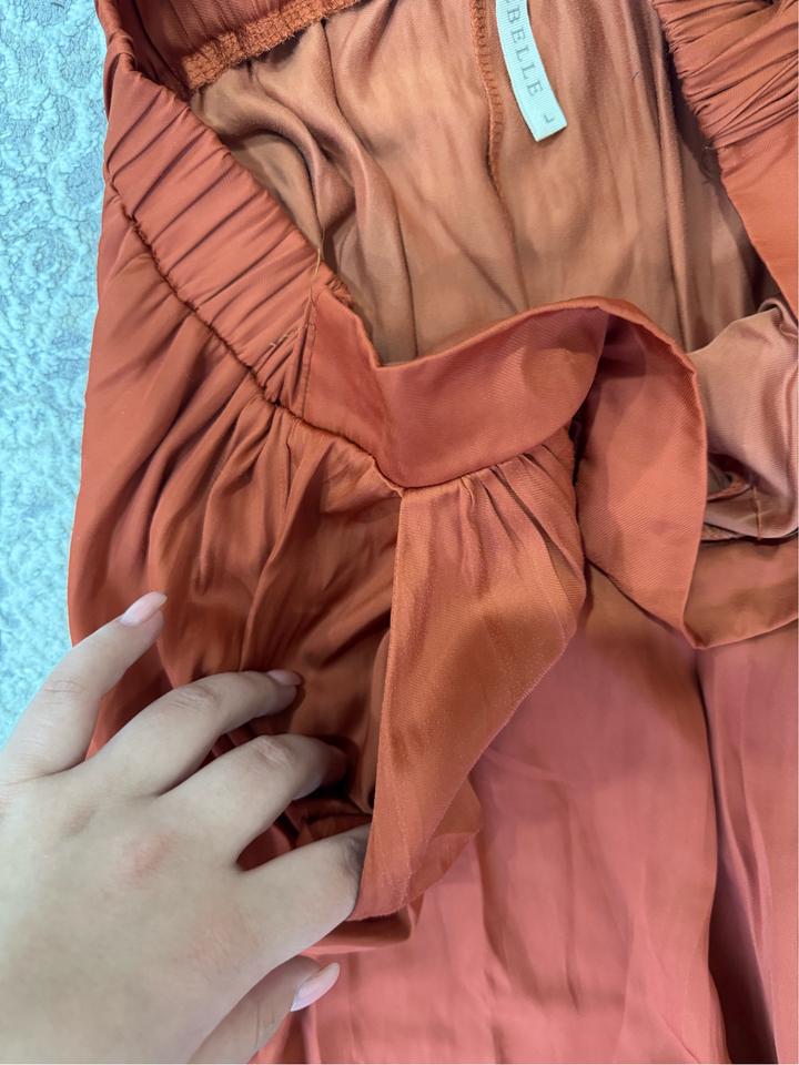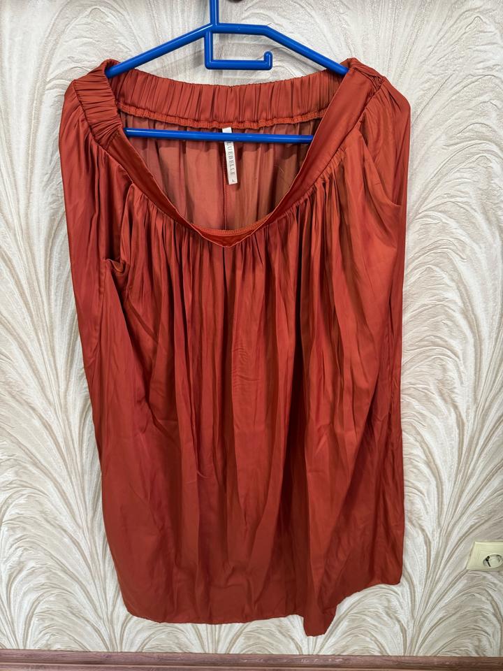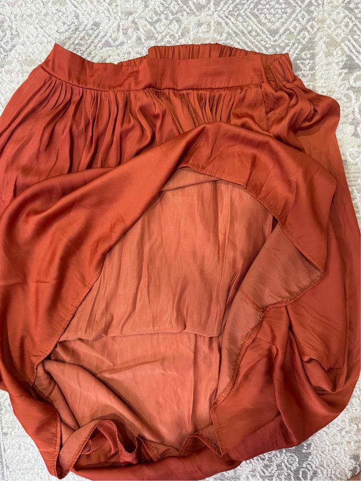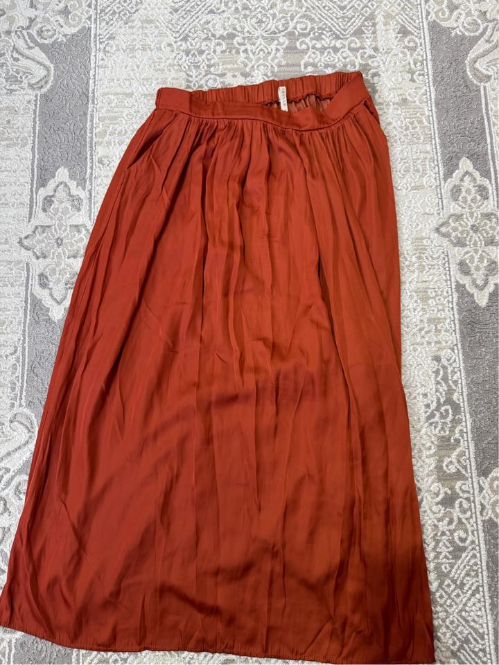 Юбка насыщенного терракотового цвета. Модель на мягкой эластичной резинке обеспечивает идеальную посадку по фигуре. Легкая струящаяся ткань ложится красивыми складками. Свободный крой не сковывает движения. Универсальный вариант для повседневных и вечерних образов. Размер L. Состояние отличное. Артикул: 553783