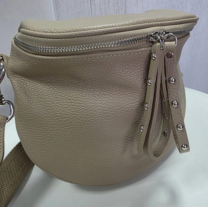 Кросс Боди . Производство:Италия. Натуральная кожа полностью, ремень комбинированный кожа и текстиль. Основной карман и внутренний имеется, а также взади сумки. В хорошем состоянии.цвет:Тауп. Артикул: 553849