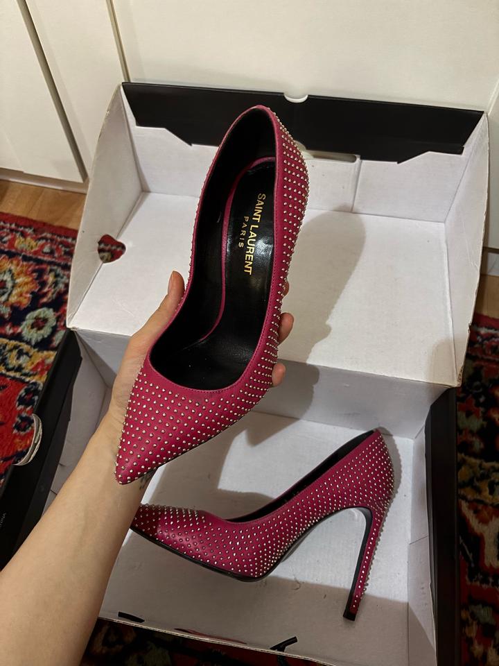 Туфли ysl оригинальные, есть потертости на каблуке, обувь кожаная с заклепками Артикул: 553851