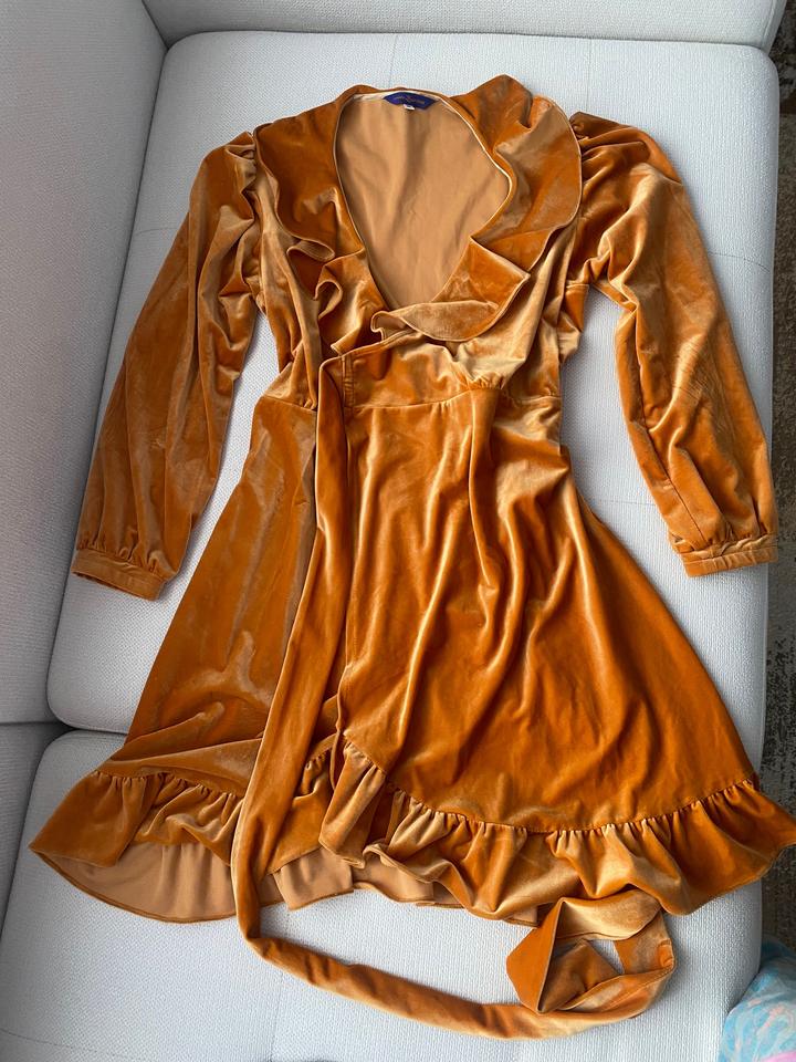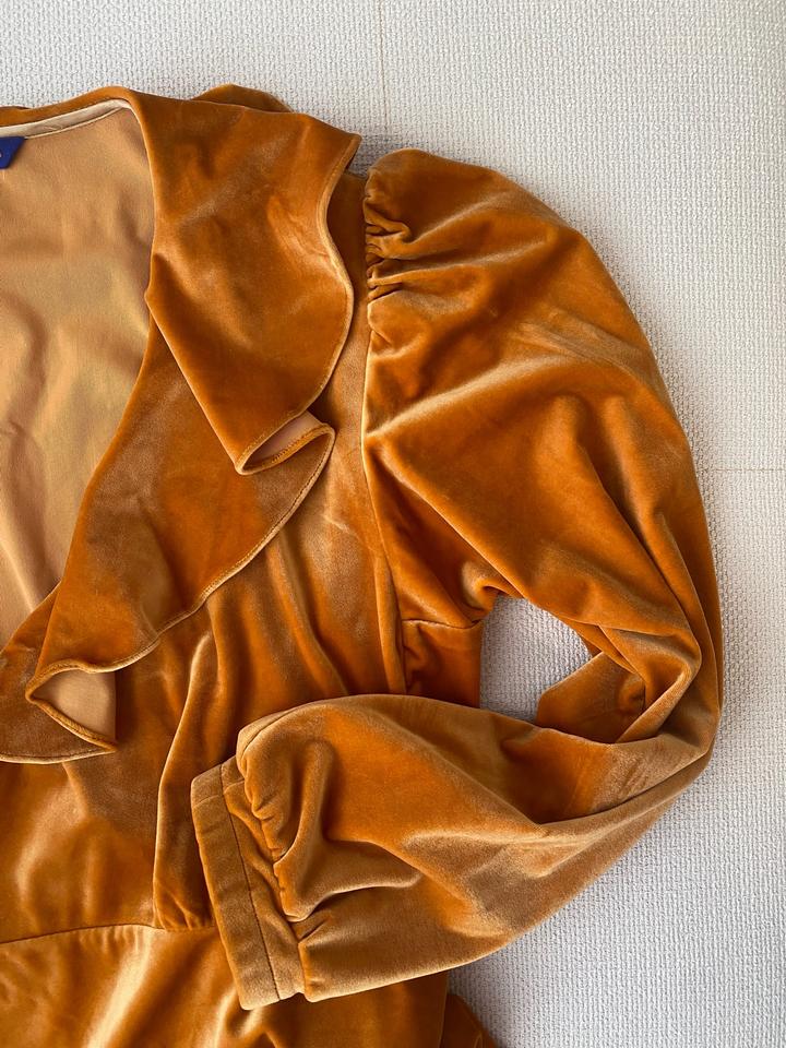 Велюровое платье на запах. горчичного цвета. Артикул: 554024