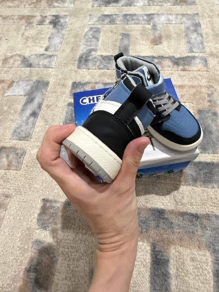 Ботинки для мальчика под Nike с контрастными вставками. Подкладка на основе флиса и стелька из текстиля. Без супинатора. Фиксация: шнуровка-резинка, ремешок и замок на боковине. Толстая рифлёная подошва. Демисезон: весна, осень. Артикул: 554030