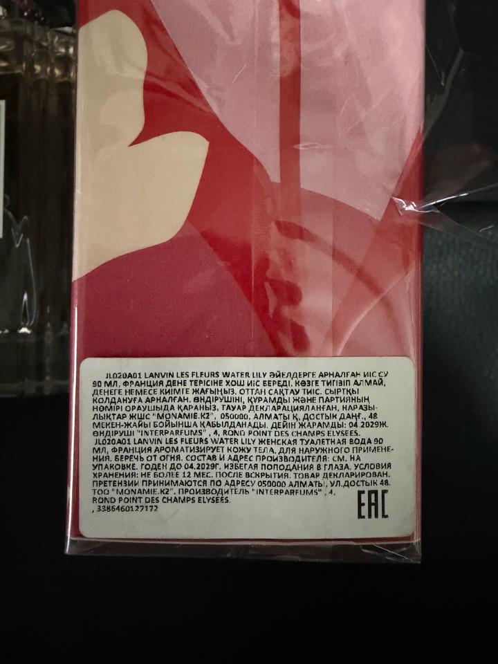 Туалетная вода Lanvin Water lily 90ml. Покупался в монами, имеет производственный брак. По ошибке напечатали название другого аромата этого же бренда Blue Orchid. Есть в наличии 4шт. Все с браком ( Покупала за 23к. Артикул: 554081