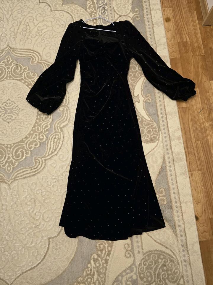 Стильное чёрное платье — классика, которая всегда в моде. Лёгкая, струящаяся ткань красиво садится по фигуре и создаёт женственный силуэт. Свободный верх с длинными рукавами Юбка на запах — подчёркивает фигуру Универсальный вариант: подойдёт и на каждый день, и на вечер Состояние: хорошо Размер:М Смотрится очень стильно и дорого Пиши в директ Артикул: 554088