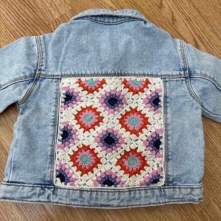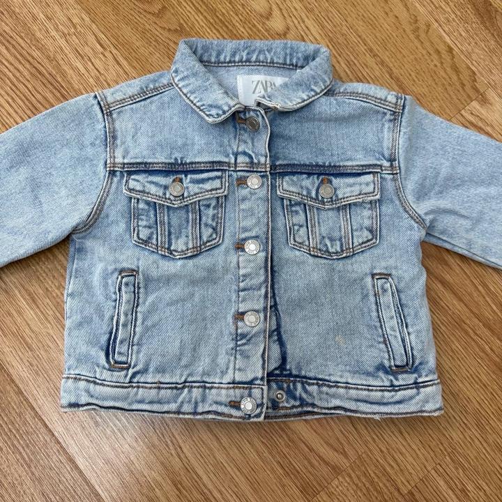 Джинсовая куртка Zara голубого цвета, на спине вышивка, на ростовку 86 см Артикул: 554197