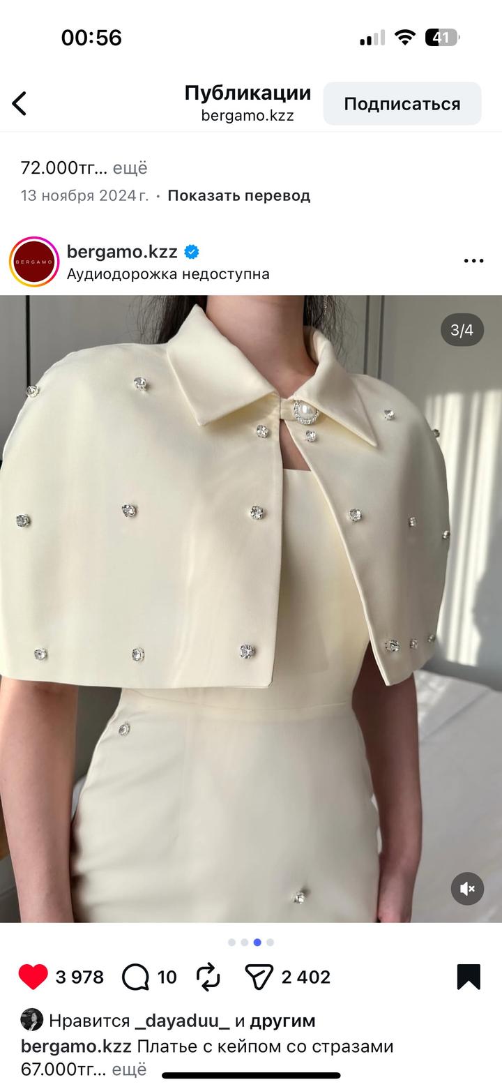 Продаю красивое платье цвета айвори, украшенное стразами, от бренда Bergamo. При носке выглядит очень нежно и изящно. Подходит на размеры S и XS. Надевала всего один раз на мероприятие Сырға салу Артикул: 554246