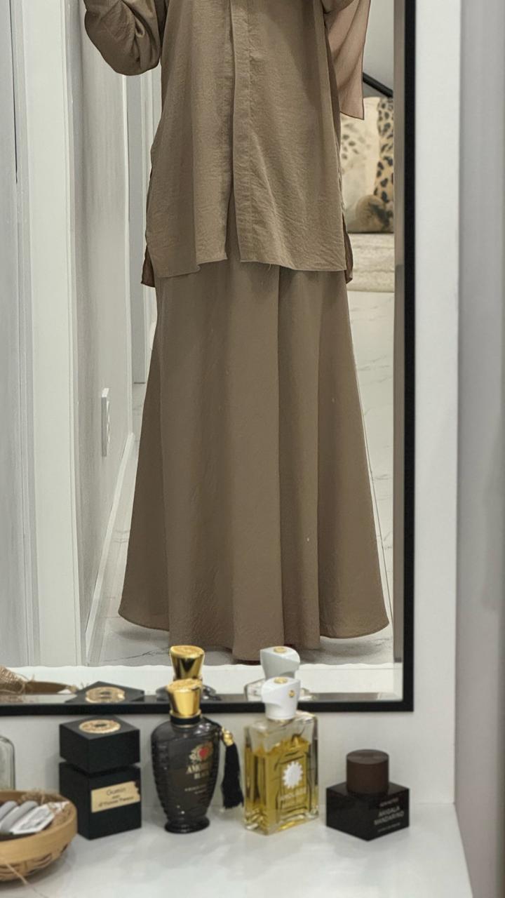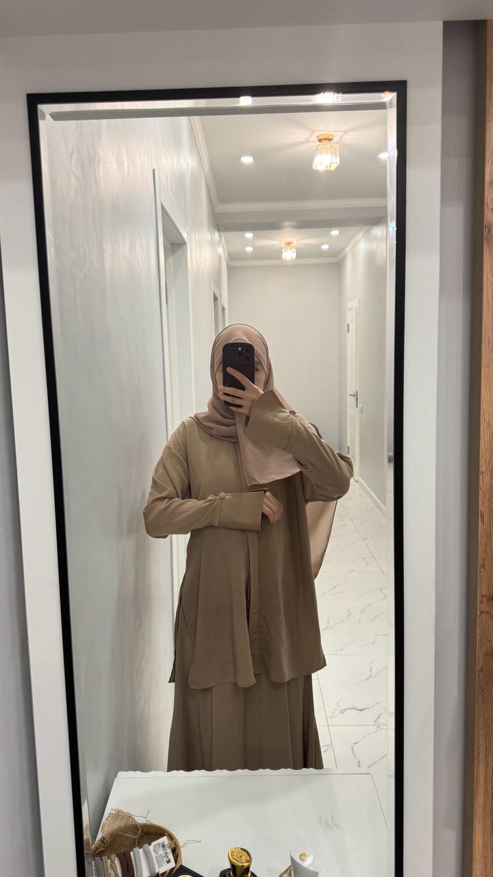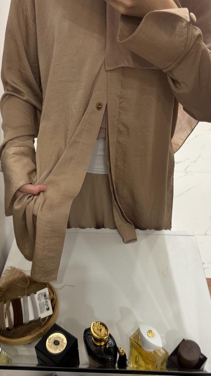 Двойка из жатого шелка. Юбка на рост до 175. Казахстанский бренд belli collection. На рубашке не хватает двух пуговиц. Артикул: 554285