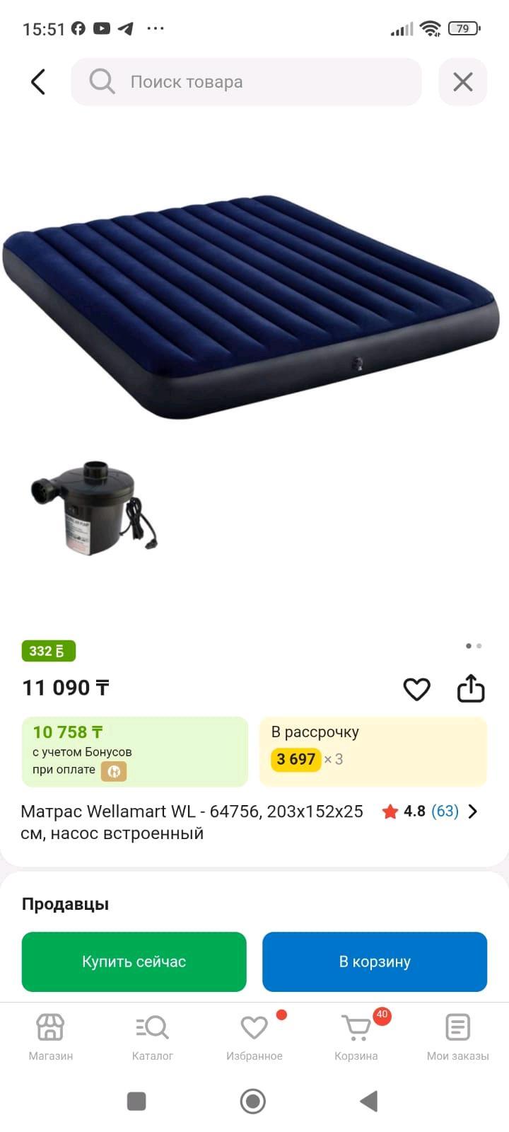 Надувной матрас — комфорт в любом месте! Продаётся надувной матрас в отличном состоянии. Идеально подойдёт для: ✔️ Дома ✔️ Гостей ✔️ Поездок и путешествий ✔️ Дачи и отдыха на природе Преимущества: ✨ Быстро надувается ✨ Удобный и мягкий ✨ Компактный в сложенном виде ✨ Прочный материал Состояние: отличное Цена: 6000 Самовывоз Б/У Максимальная нагрузка 272 кг Артикул: 554297