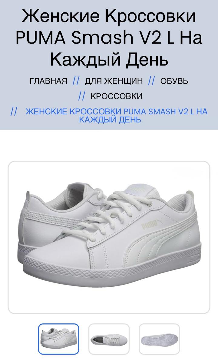 Женские белые кроссовки PUMA Smash V2. В идеальном состоянии, без дефектов. Почти как новые. Артикул: 554386